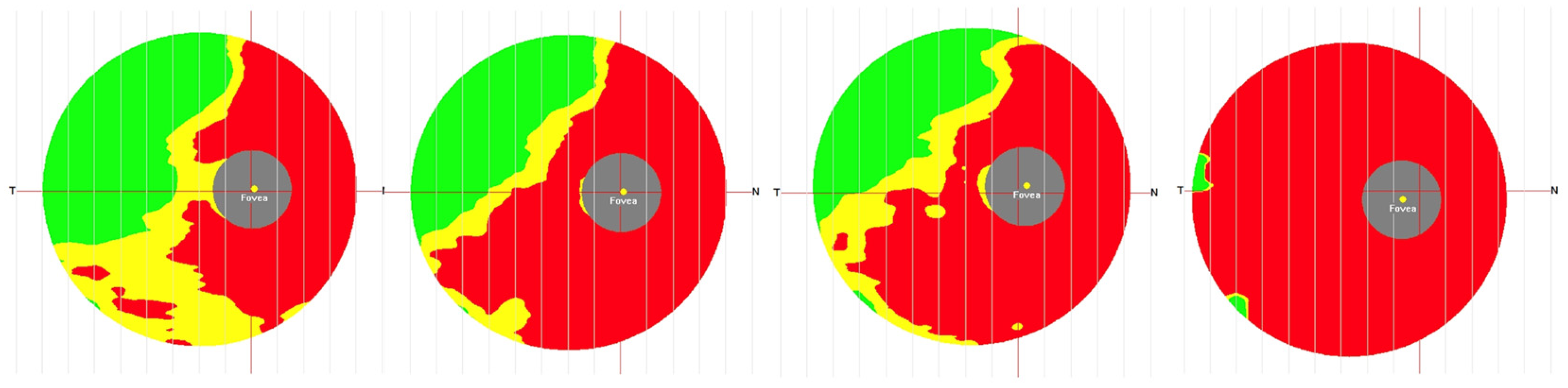 - Santorini, M.; De Moura, T.F.; Barraud, S.; Litré, C.F.; Brugniart, C.; Denoyer, A.; Djerada, Z.; Arndt, C. Comparative Evaluation of Two SD-OCT Macular Parameters (GCC, GCL) and RNFL in Chiasmal Compression. Eye Brain 2022, 14, 35–48. [Google Scholar] [CrossRef]