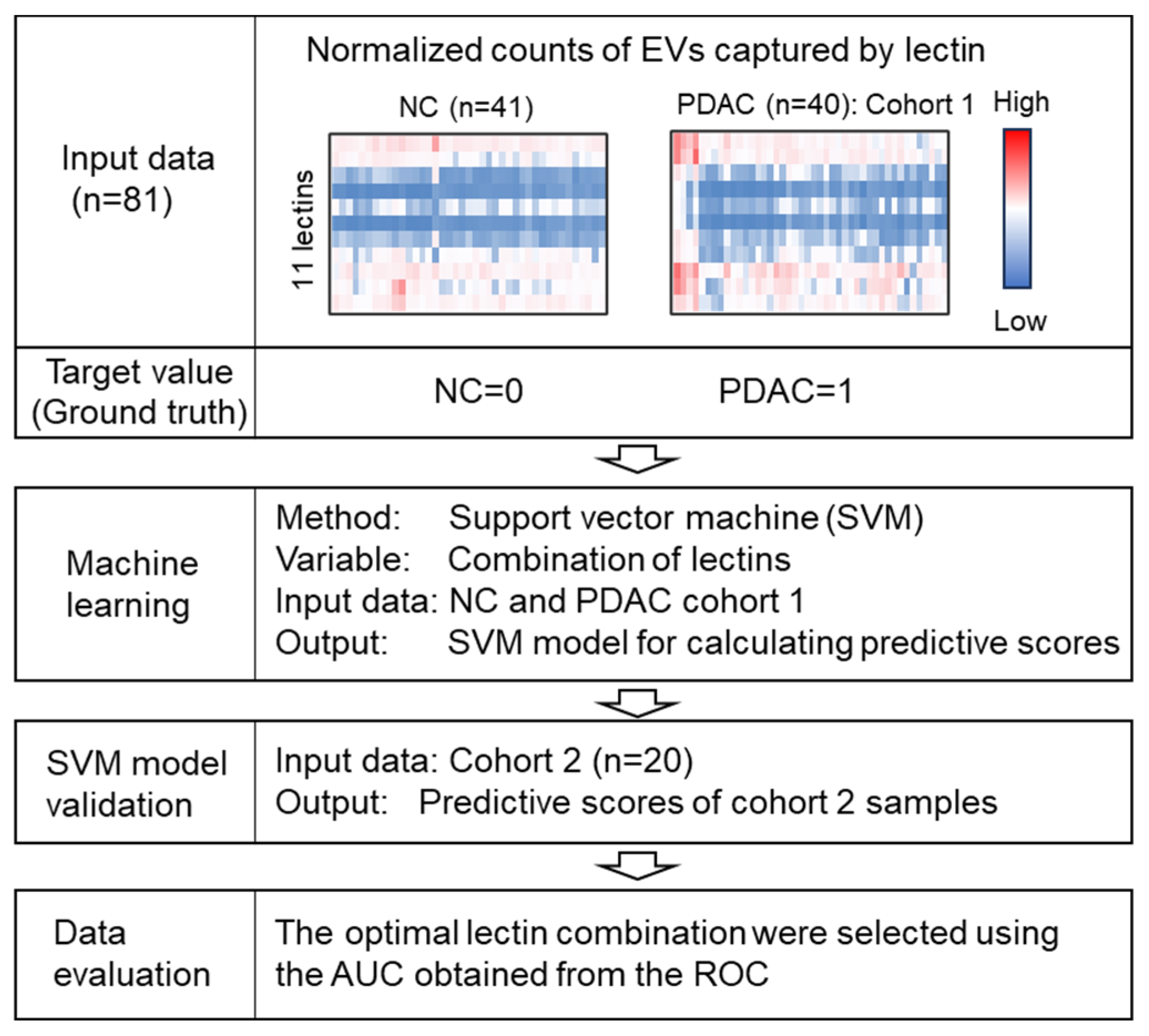 APA StyleKawakami, T., Uemura, S., Ono, M., Horikoshi, K., Kuno, A., Kashiro, A., Honda, K., Nagashima, K., Kumada, K., Munekage, M., Seo, S., Furihata, K., Furihata, M., Honke, K., Kitago, M., Kitagawa, Y., Suematsu, M., Itonaga, M., & Kabe, Y. (2026). A Pancreatic Ductal Adenocarcinoma Diagnostic System Using Serum Extracellular Vesicle Detection with Optimized Lectin Combination Using Machine Learning. Cancers, 18(6), 924. https://doi.org/10.3390/cancers18060924