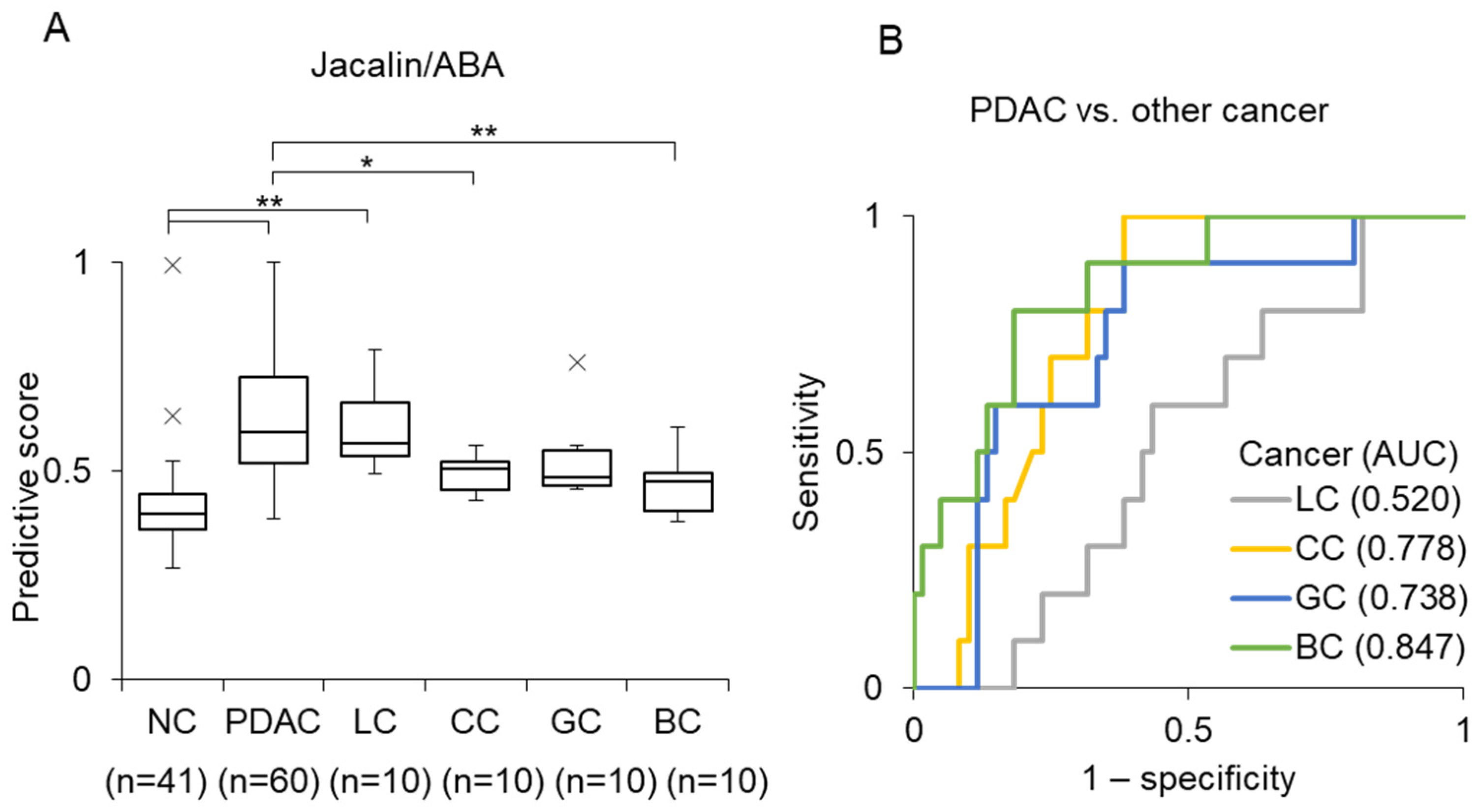 3.4. Detection of Other Cancers Using the Jacalin/ABA Combination