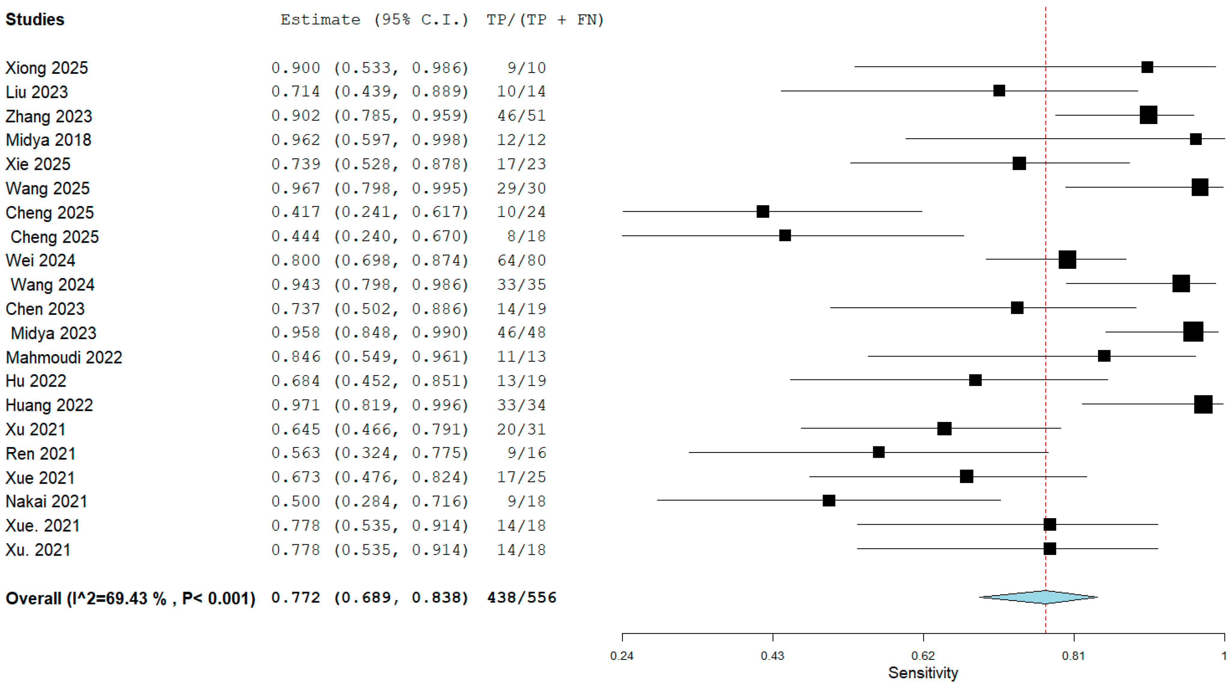 | Huang et al. [24] (2022) | Manual segmentation on largest lesion slice (ITK-SNAP) | ICC > 0.8 for feature stability, mRMR + LASSO for selection | Radiomics nomogram (LASSO + logistic regression) | Radiomics signature | Internal hold-out (7:3 split) | - |