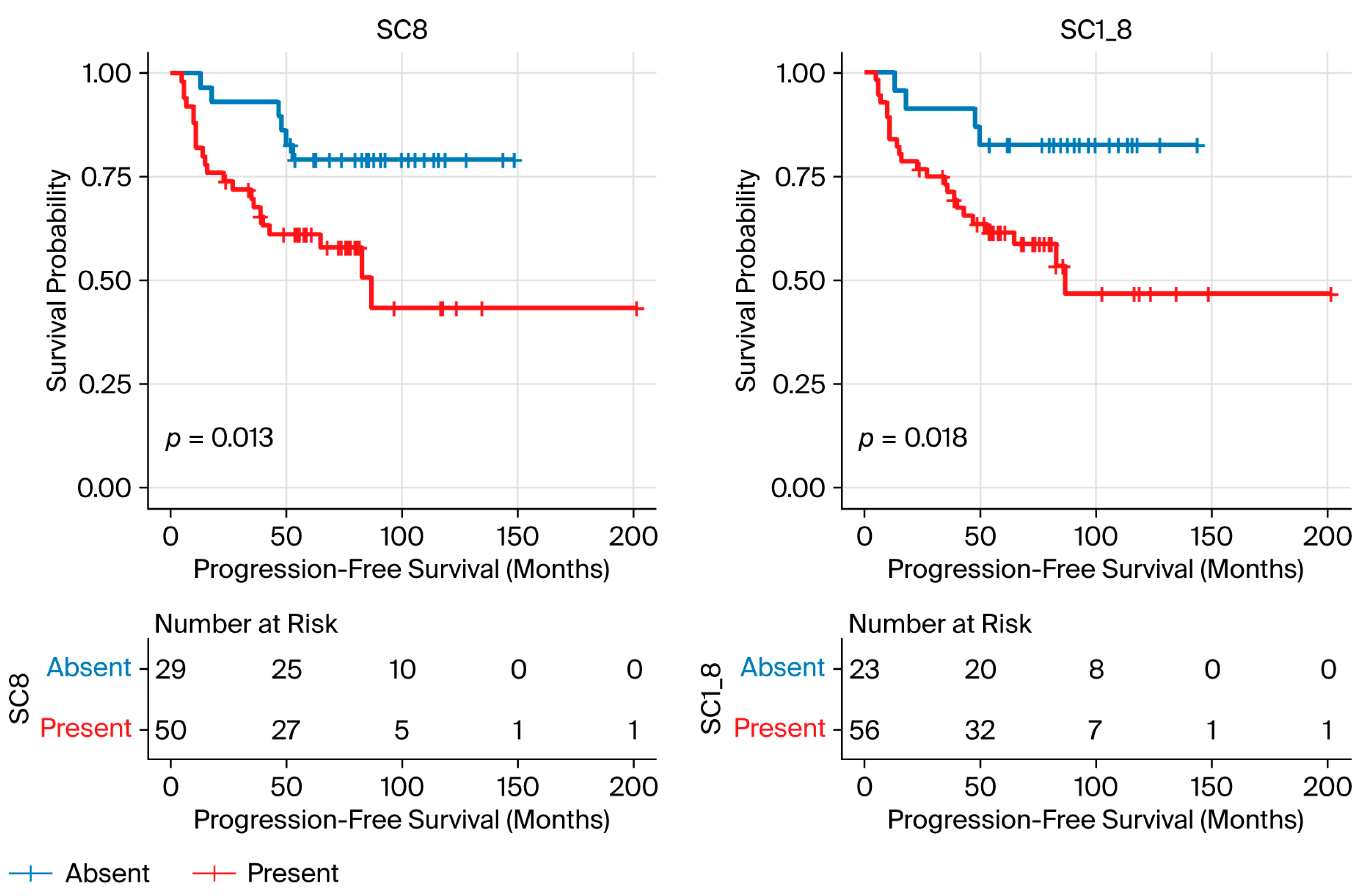| Cluster | Median (%) | N Events (%) | p 1 KM | HR (95% CI) | p 2 Cox | FDR |