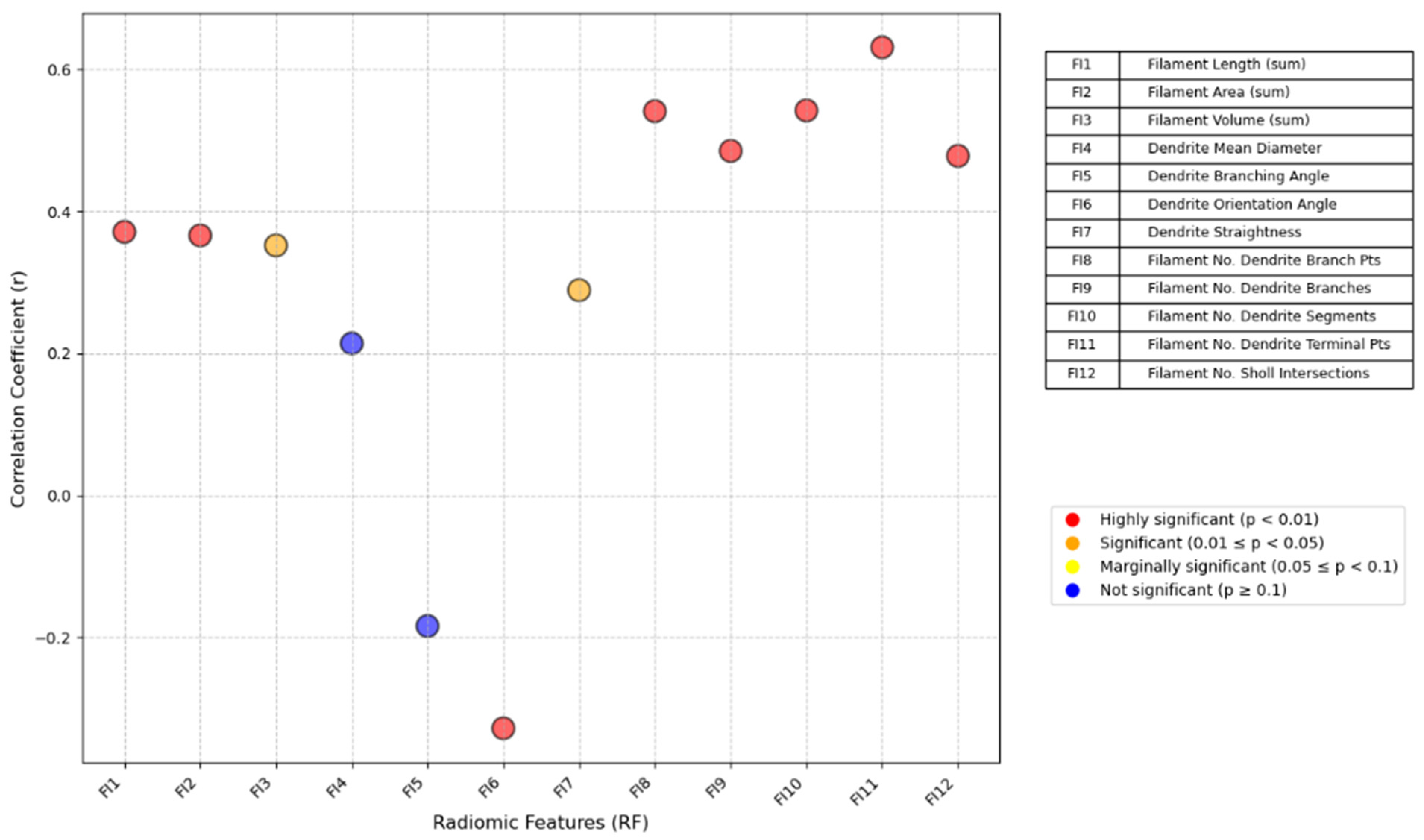 - Filament No. Dendrite Branch Pts: Number of branch points in the fiber structures.