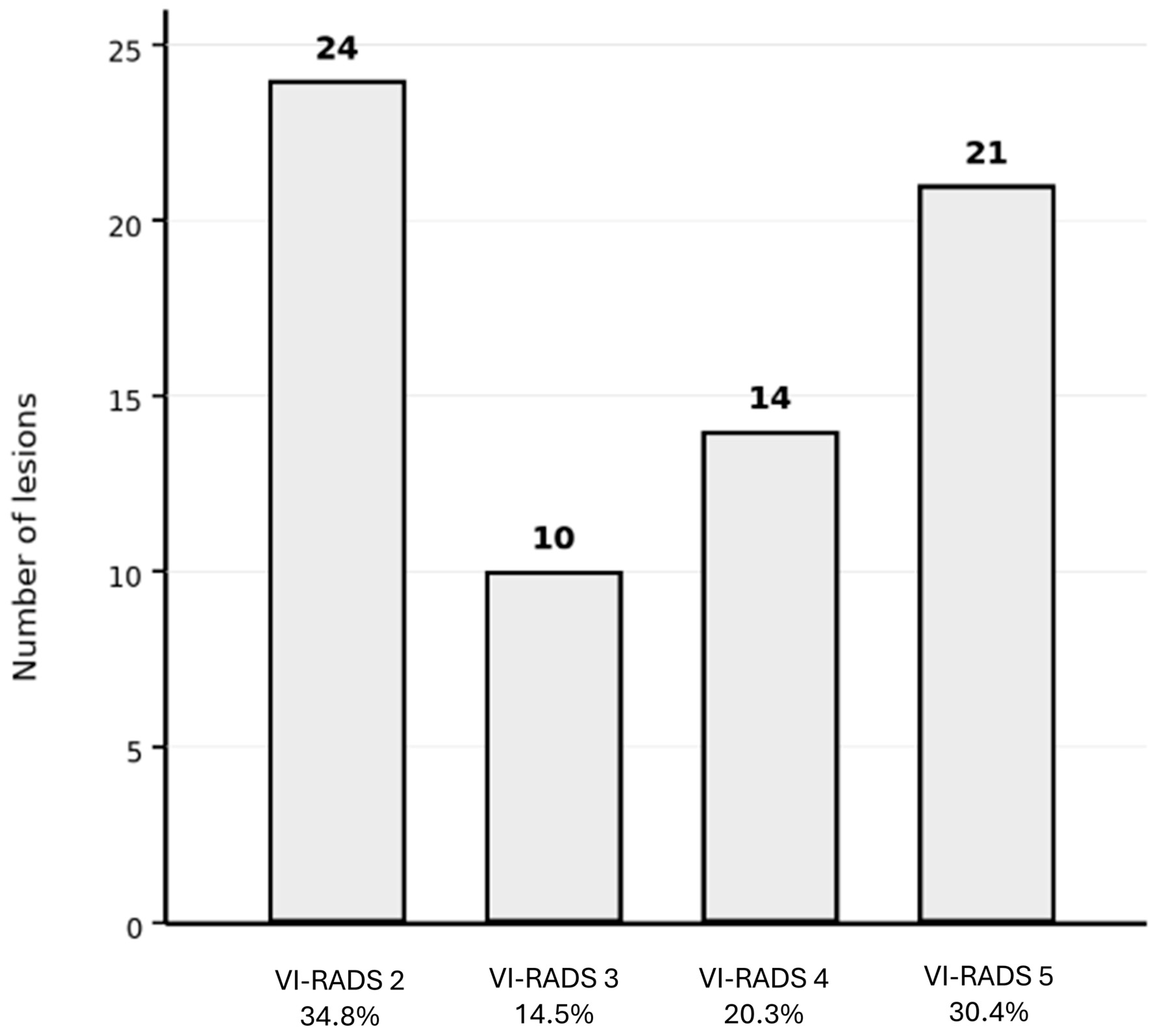 3.2. Distribution of Reference mpMRI VI-RADS Scores