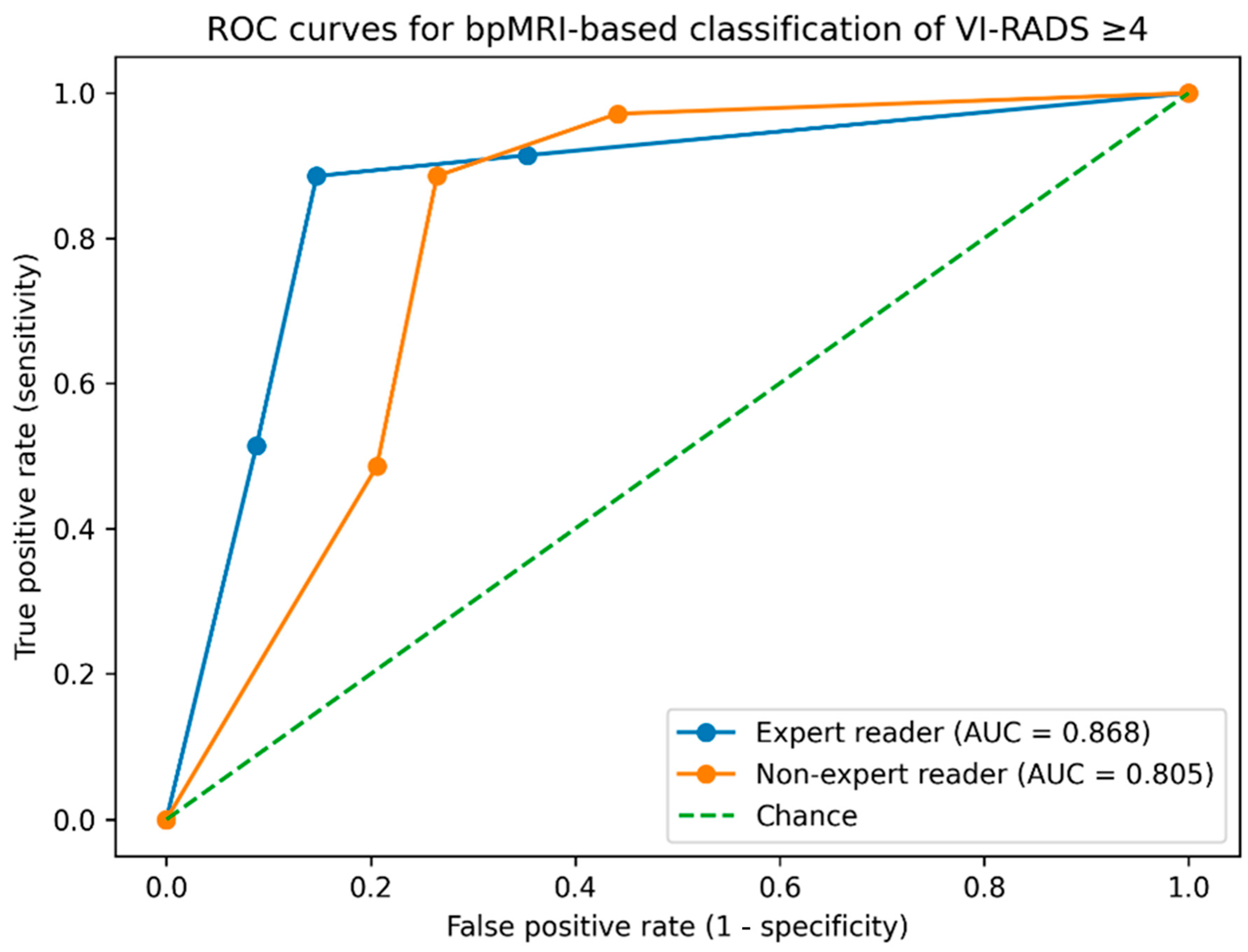 | AUC for Vi-Rads ≥ 4 | 0.87 (0.78–0.95) | 0.81 (0.69–0.91) |