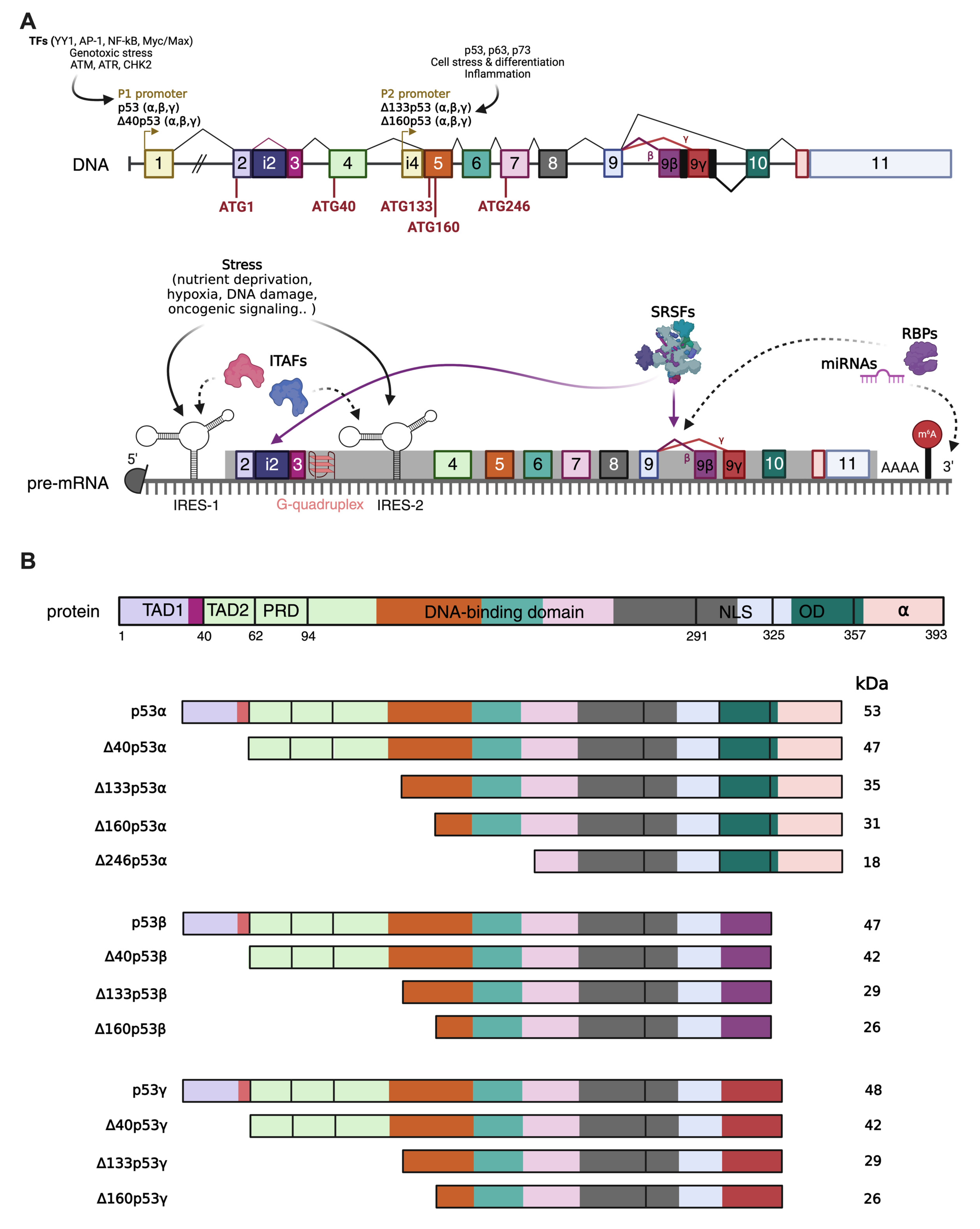 2.1. Promoter-Dependent Regulation of p53 and Its Isoforms