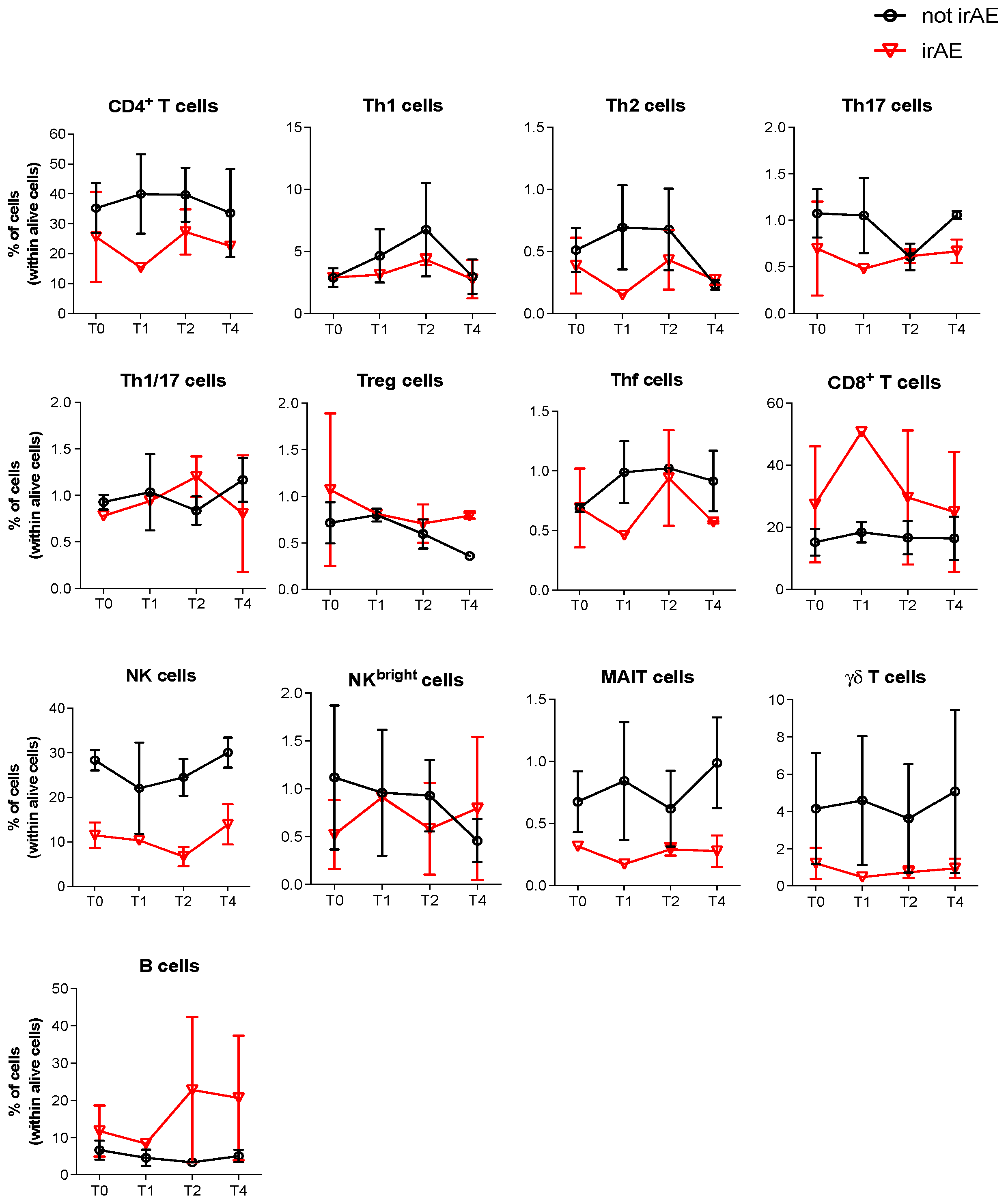 3.3. Analyses of the Circulating Immune Cell Subsets in iBRAF/iMEK-Treated Patients with irAEs