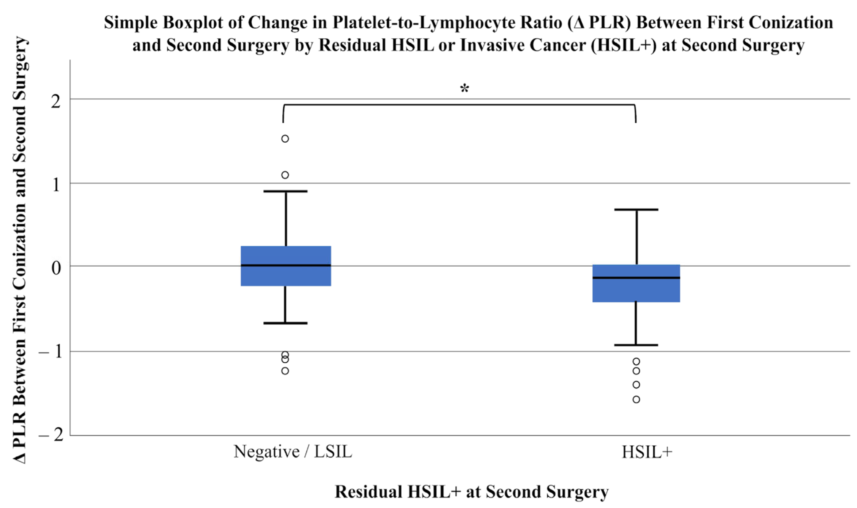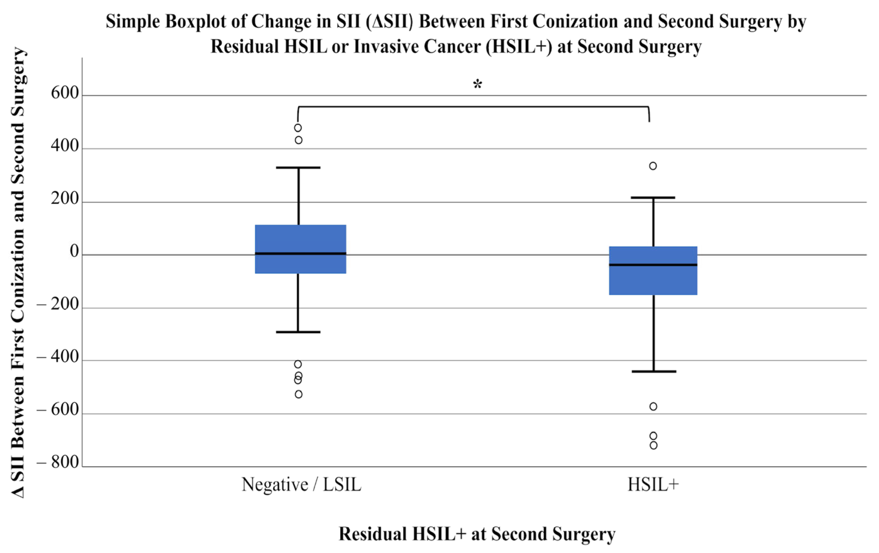 | Change in SIRI Between First and Second Surgery (ΔSIRI) | |
