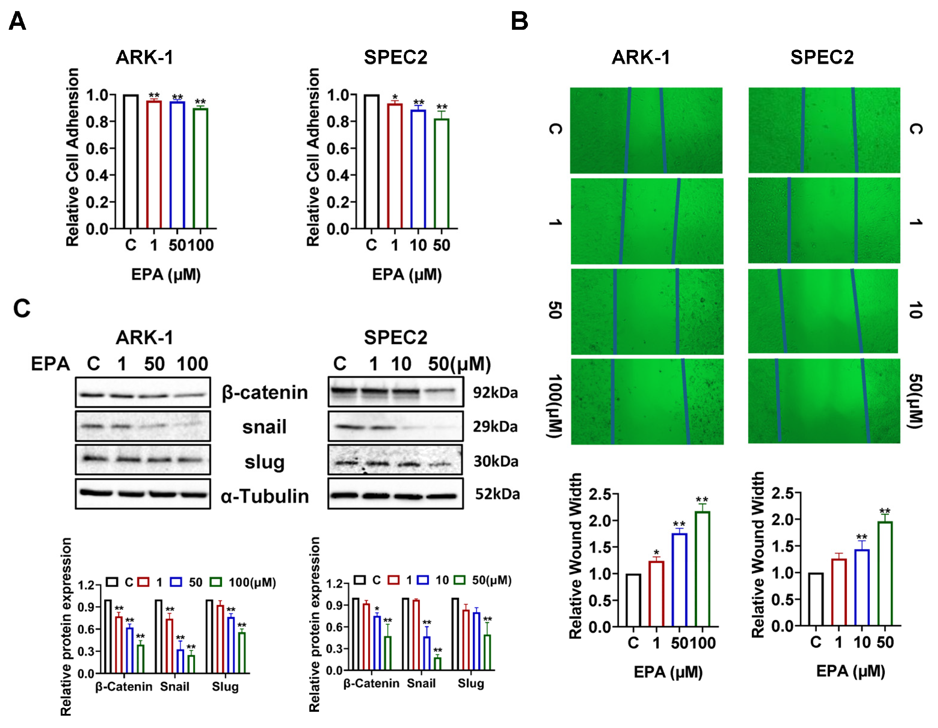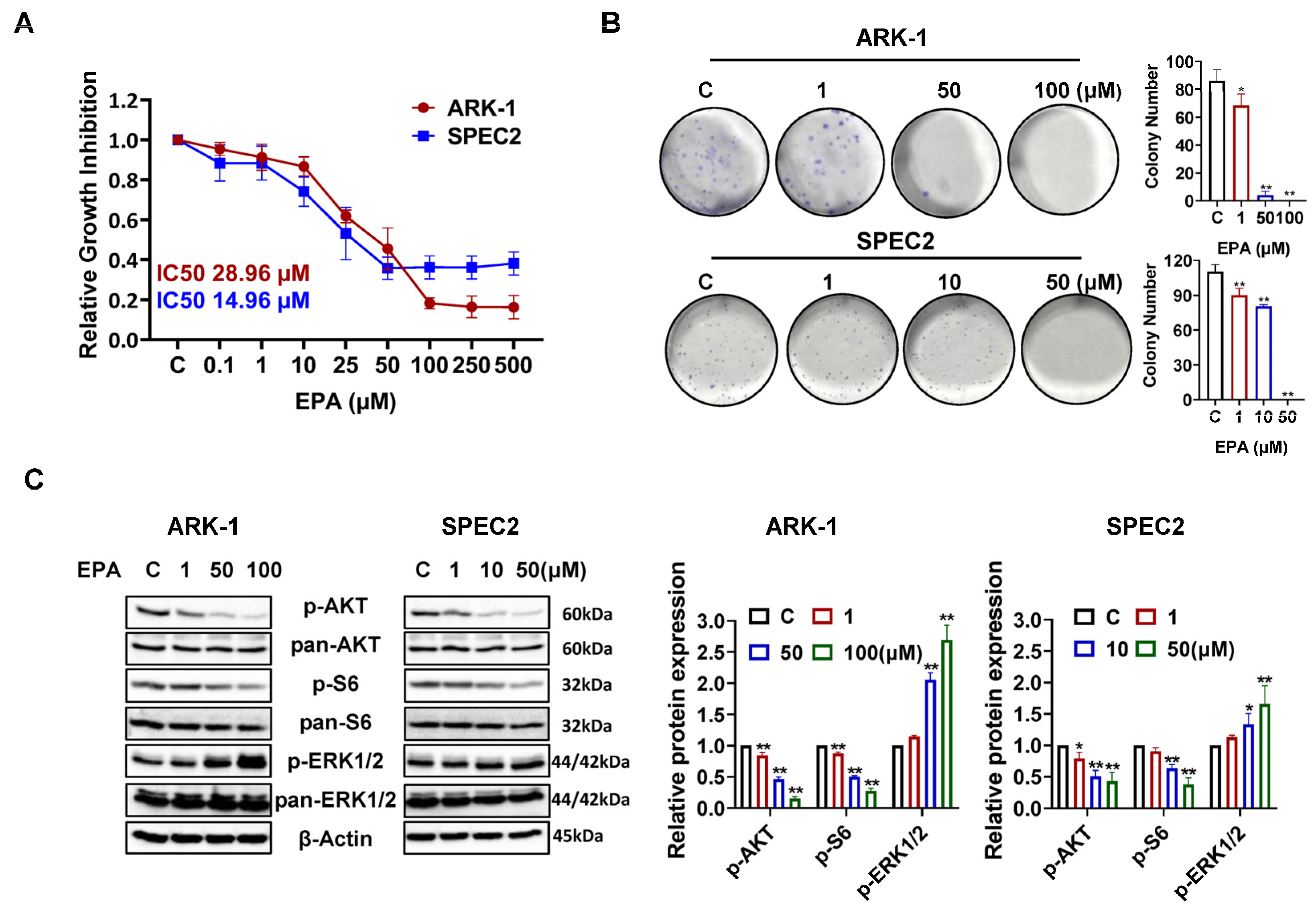 3.1. EPA Inhibits Cell Proliferation in USC Cells