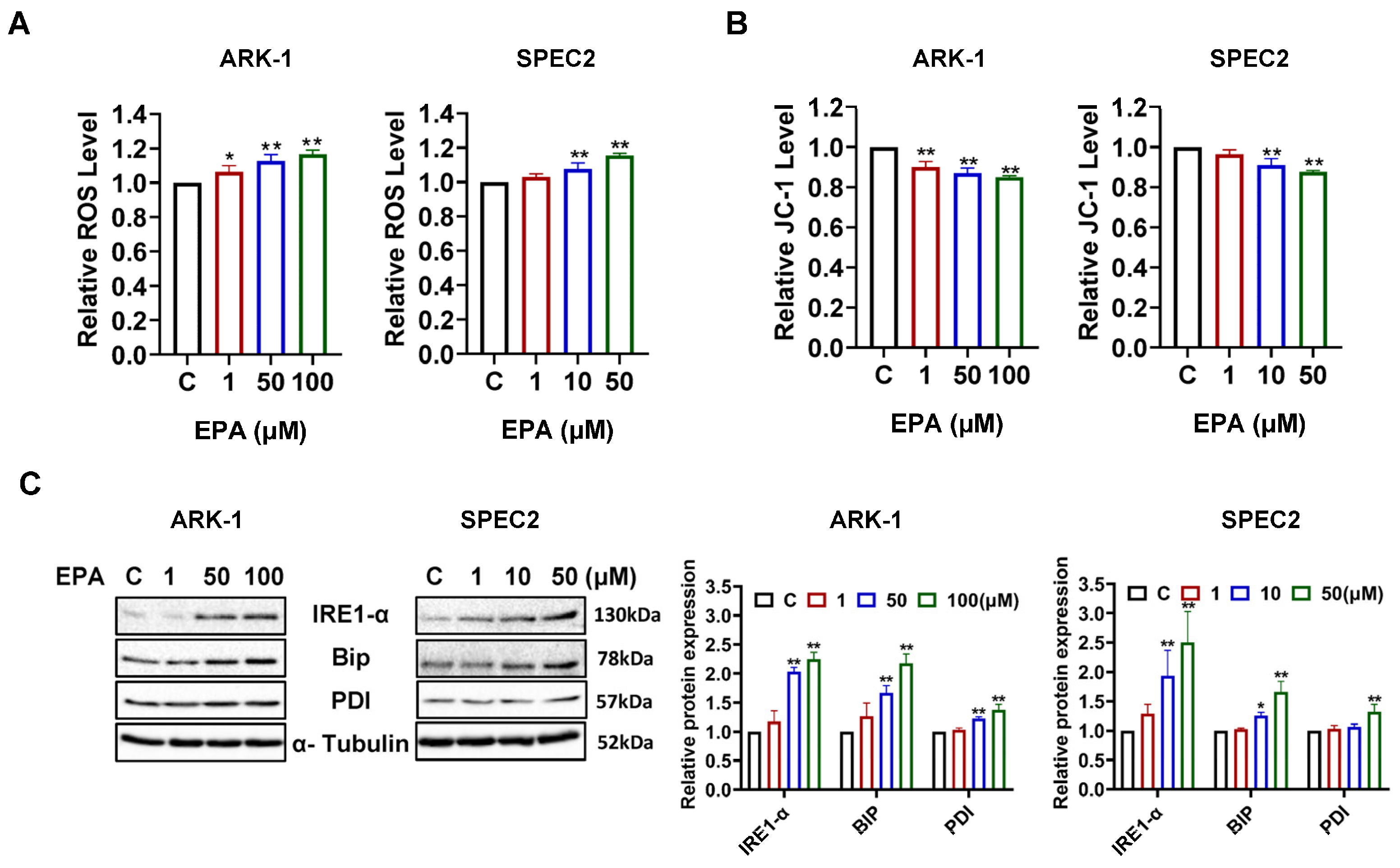 3.3. EPA Triggers Cellular Stress Responses in USC Cells