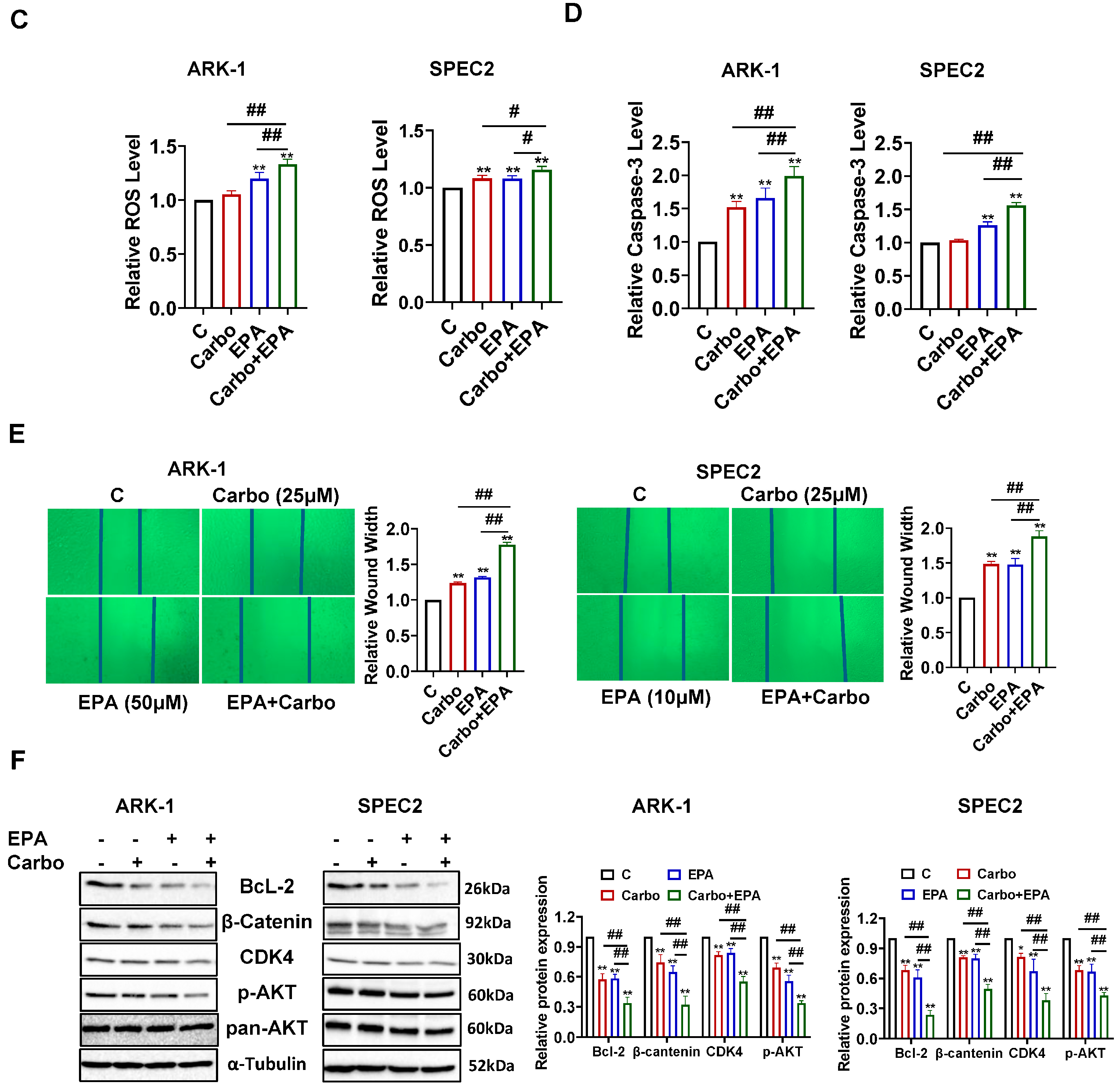 3.7. EPA Synergistically Enhances the Sensitivity of USC Cells to Carboplatin