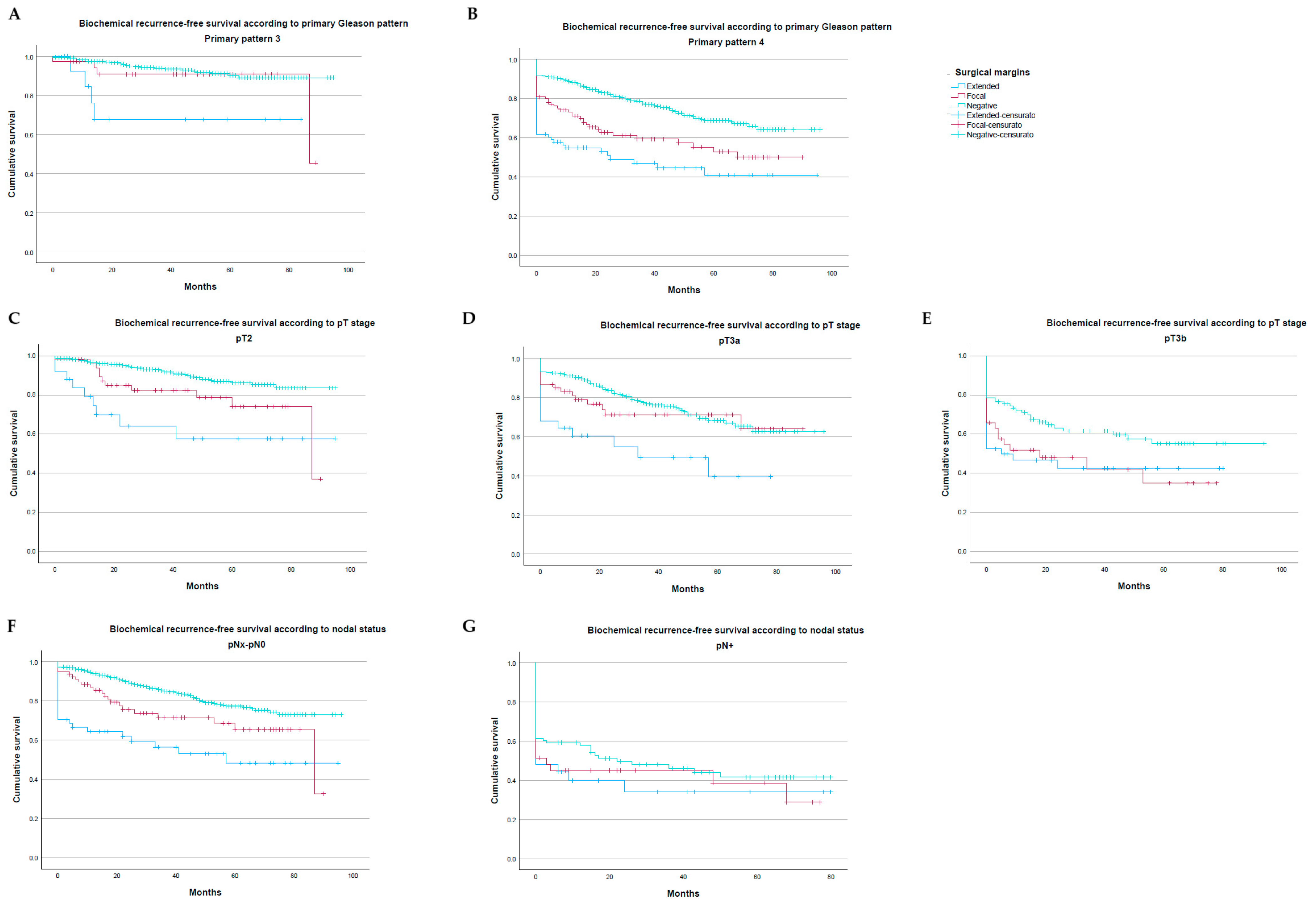 APA StyleOderda, M., Calvo, D., Calleris, G., Iorio, G. C., Marquis, A., Marra, G., Merani, U., Sasia, A., Venturi, A., & Gontero, P. (2026). Pathological Stage and Grade Determine the Impact of Focal Versus Extensive Positive Surgical Margins After Radical Prostatectomy. Cancers, 18(7), 1123. https://doi.org/10.3390/cancers18071123