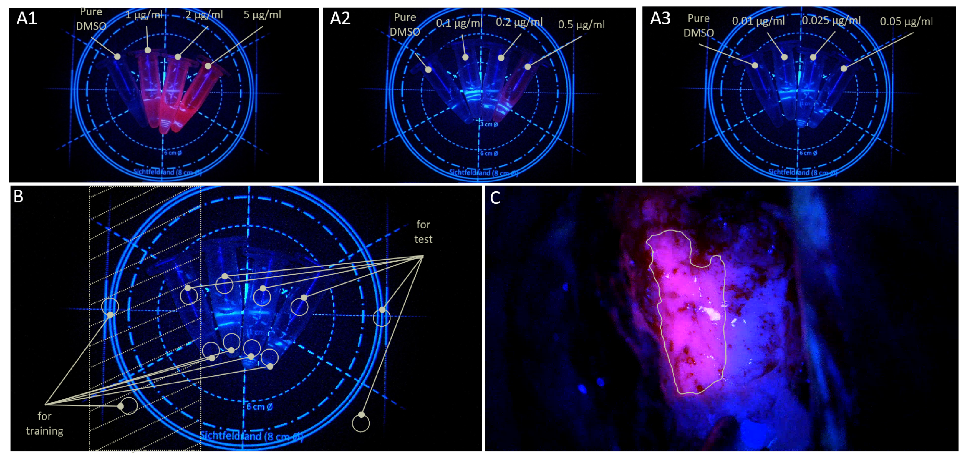 Liquid fluorescent samples were prepared with nine different PPIX (Sigma Aldrich, St. Louis, MO, USA) concentrations dissolved in 1 mL dimethyl sulfoxide (DMSO; Carl Roth, Karlsruhe, Germany): 5
