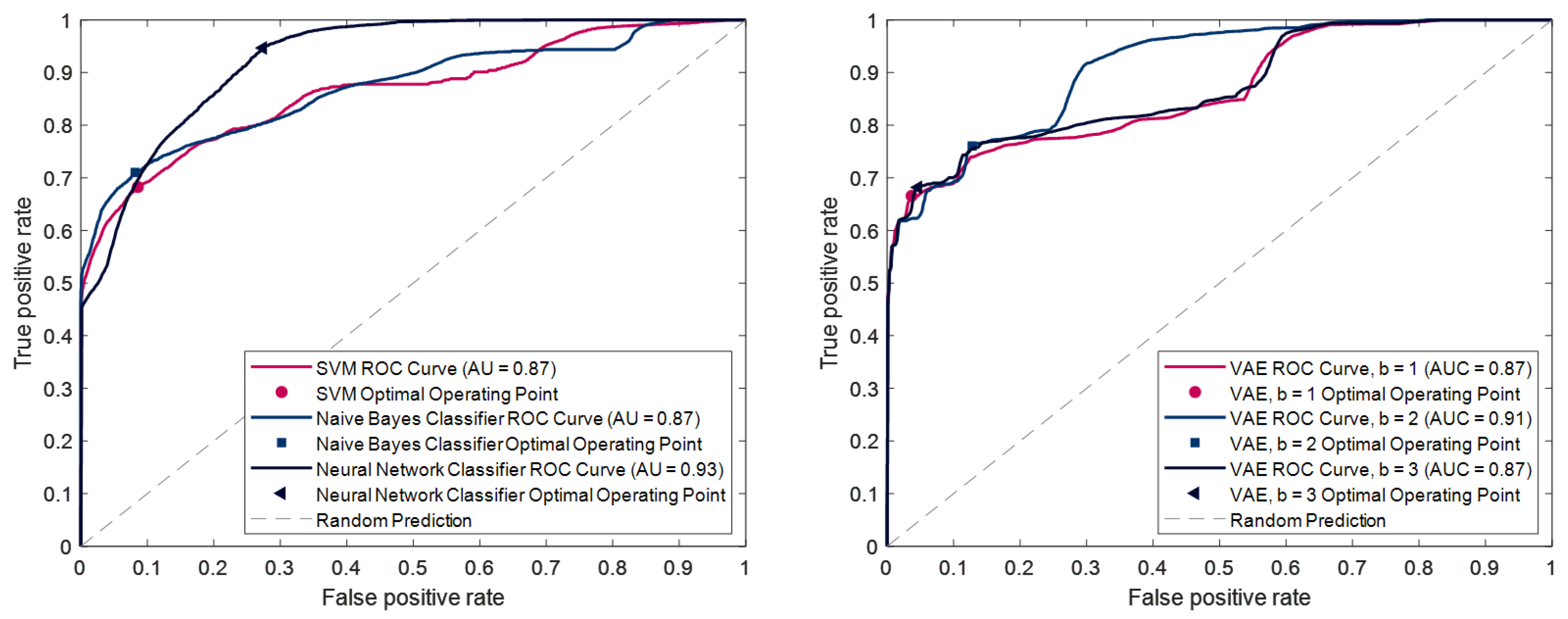 The VAE architecture comprised a 10-dimensional input layer, a three-dimensional latent layer, and a corresponding 10-dimensional output layer. Training was conducted over 1000 epochs, with calculations performed on randomly selected mini-batches of size 256 within each epoch. The learning rate was progressively reduced from 0.001 to 0.0001 following an exponential decay schedule. The -factor, which controls the balance between reconstruction accuracy and latent space regularization, was adjusted using a two-phase cyclic annealing algorithm spanning a total of 20 cycles. During the first half of each cycle, increased from 0 to its maximum value following a sigmoidal progression. In the second half of each cycle, remained constant at this maximum value. Three distinct VAE models were trained for anomaly detection, each with a different maximum -factor, including = 1, = 2, and = 3. The Kullback–Leibler divergence was used as the anomaly score for normal and anomaly classification.