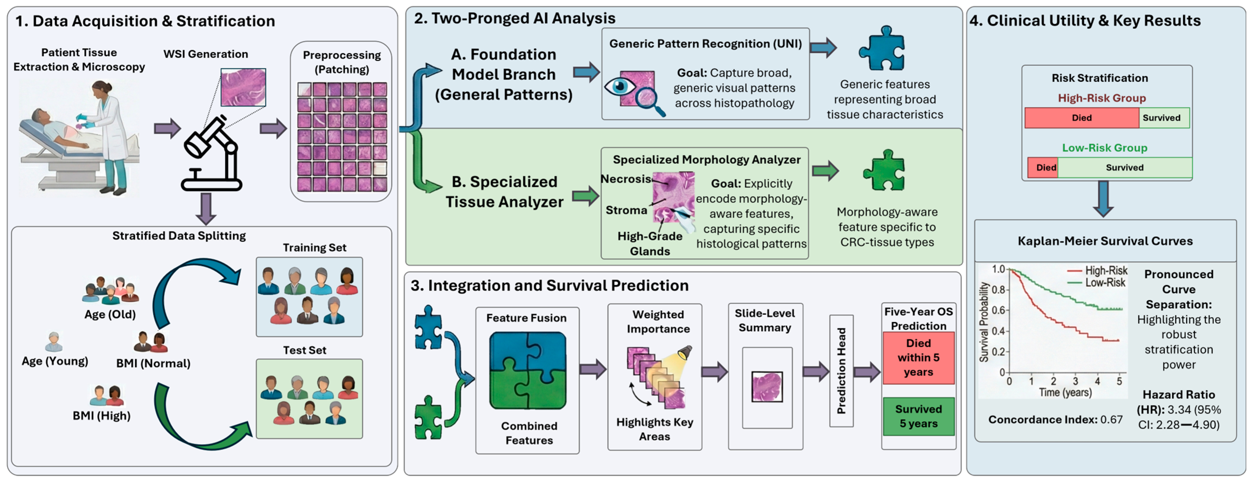 4.2. Prognostic Stratification of Stage III CRC Patients Using a Morphology-Aware Deep Learning Network