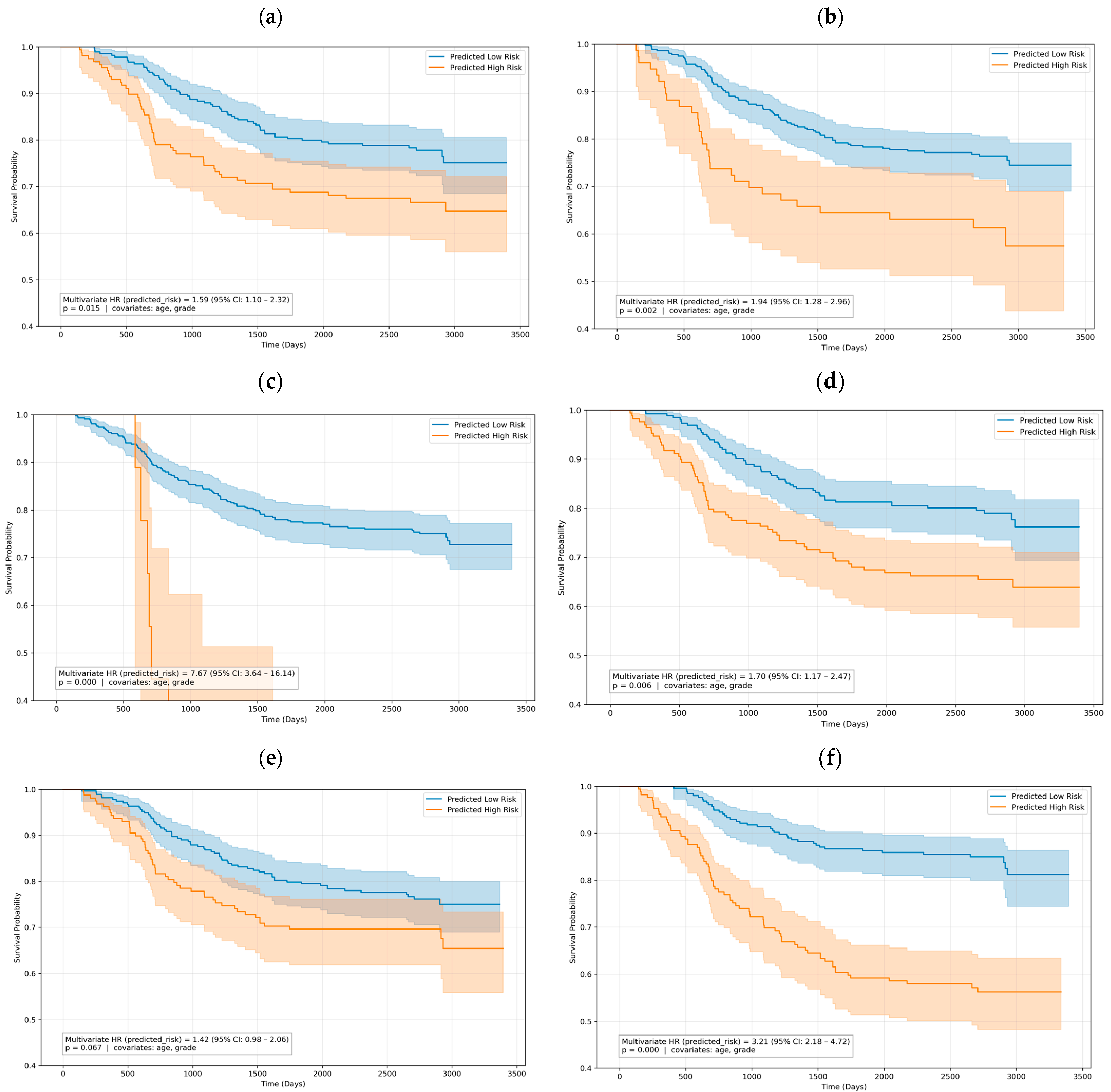 4.4. Morphology-Informed Features Correlation with Time-to-Event Survival