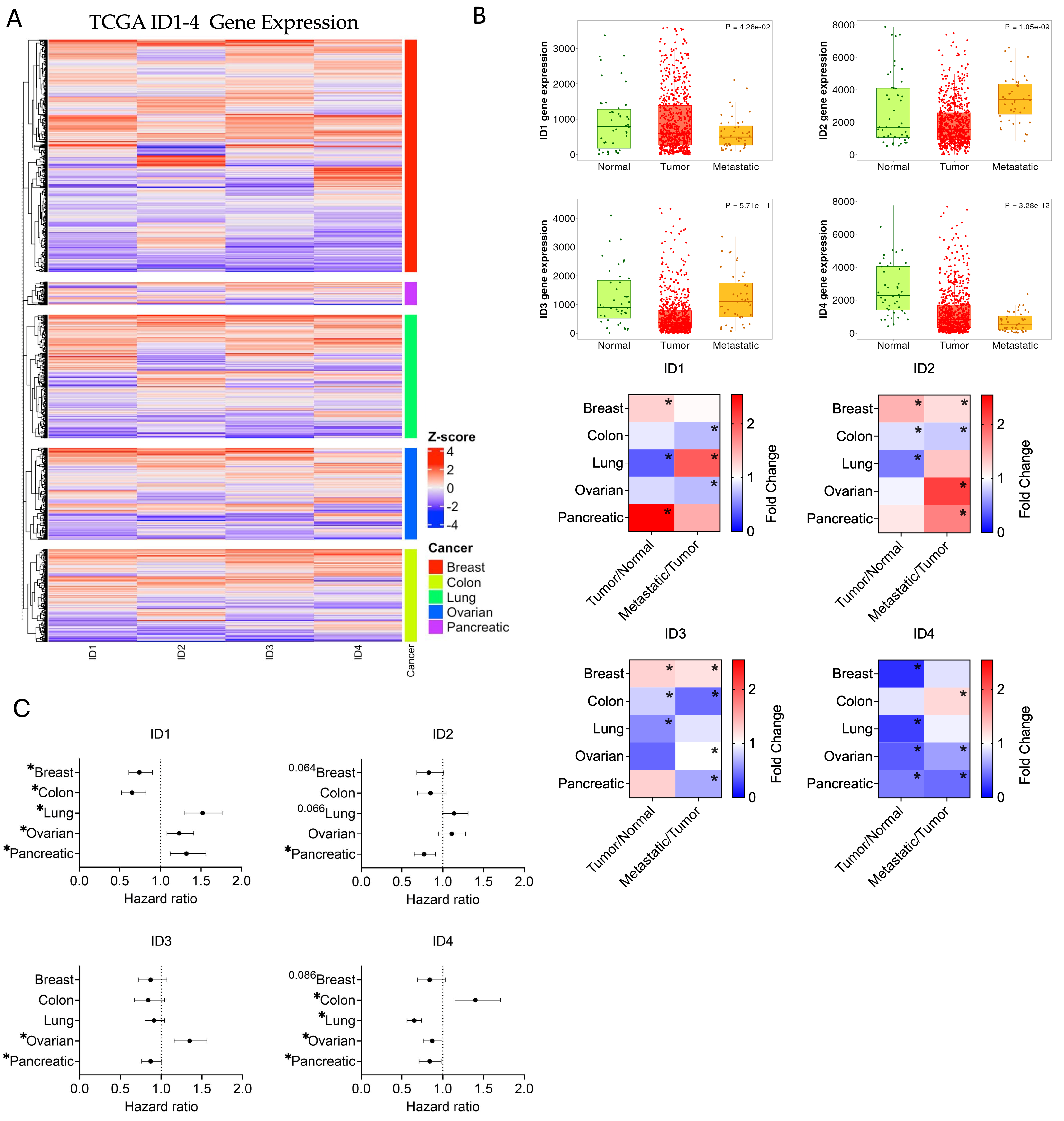3.1. Patient-Level Patterns of ID1-4 Expression Across Several Prevalent Cancers