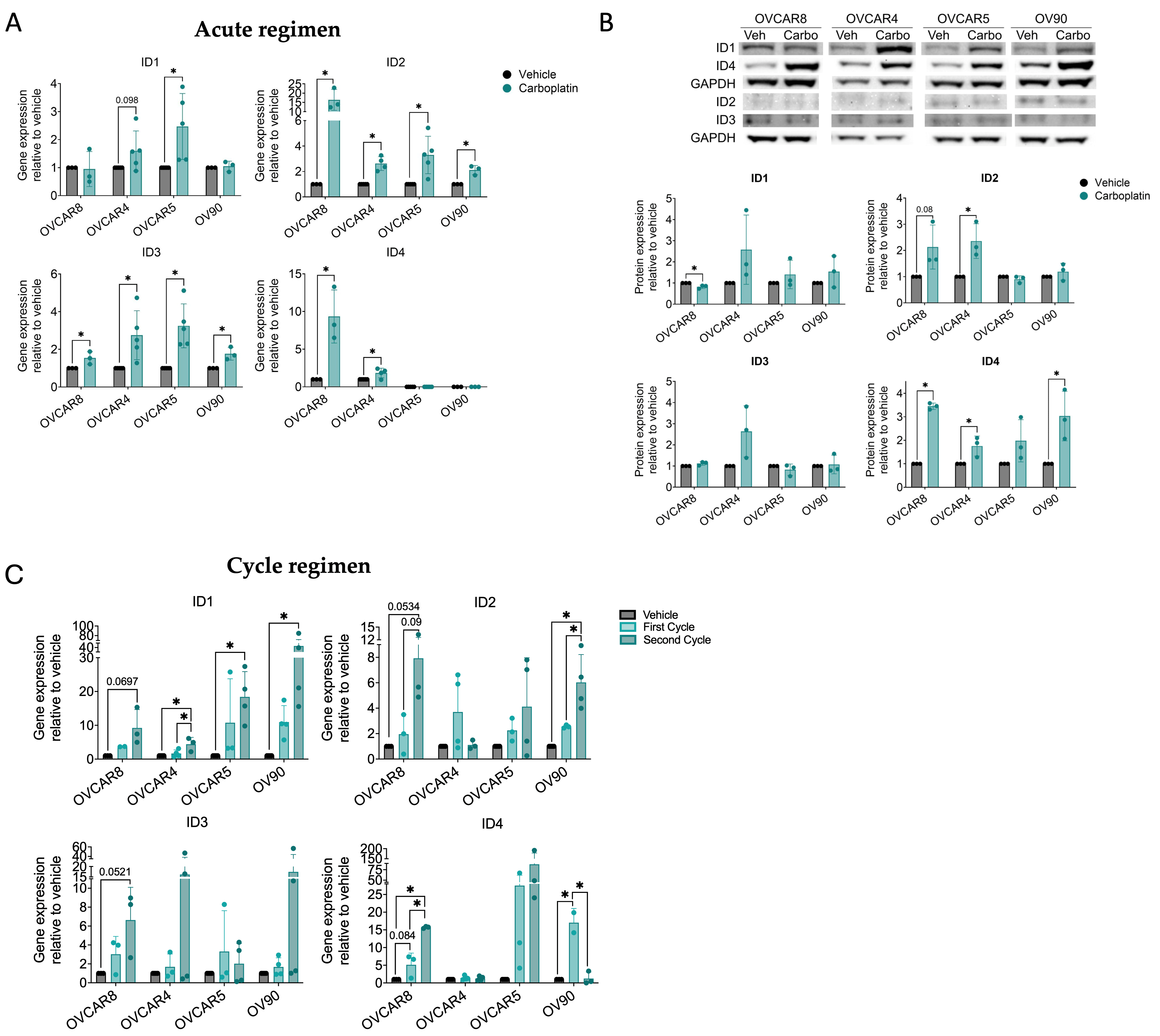 3.2. Chemotherapy-Associated Upregulation of ID Expression in Ovarian Cancer