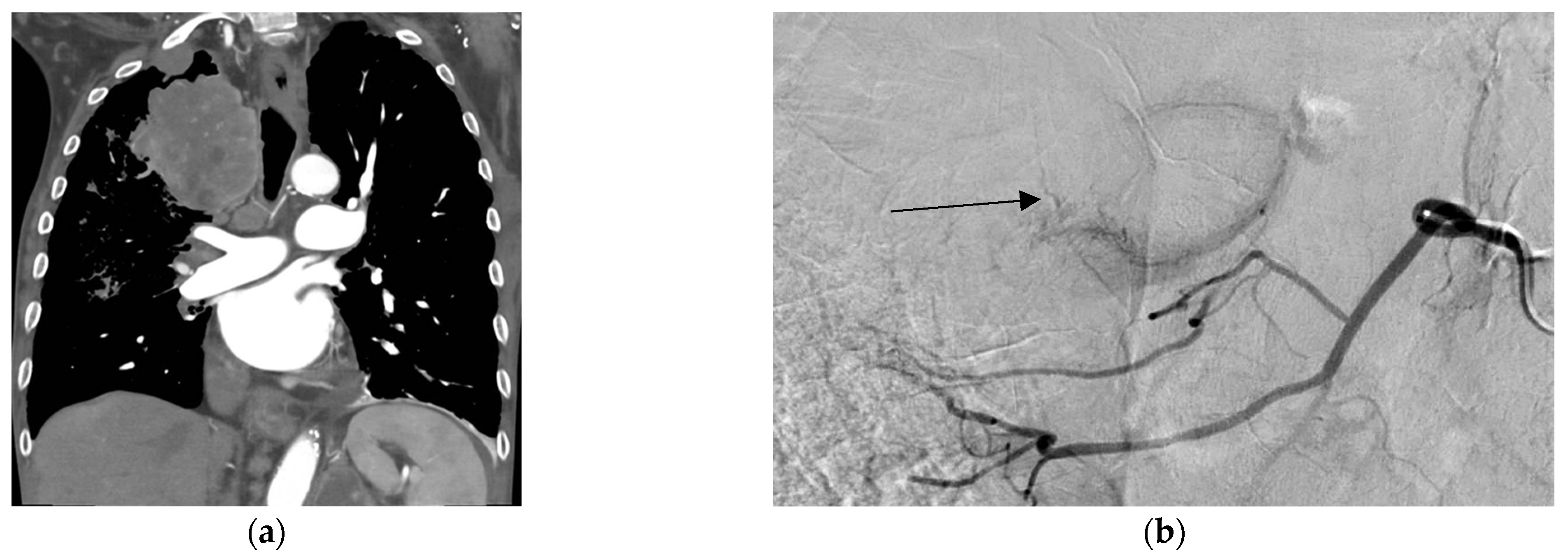 - Zhang, F.; Liu, Y. Transcatheter Arterial Chemoembolization for Lung Malignant Tumors. Front. Oncol. 2025, 15, 1551644. [Google Scholar] [CrossRef]