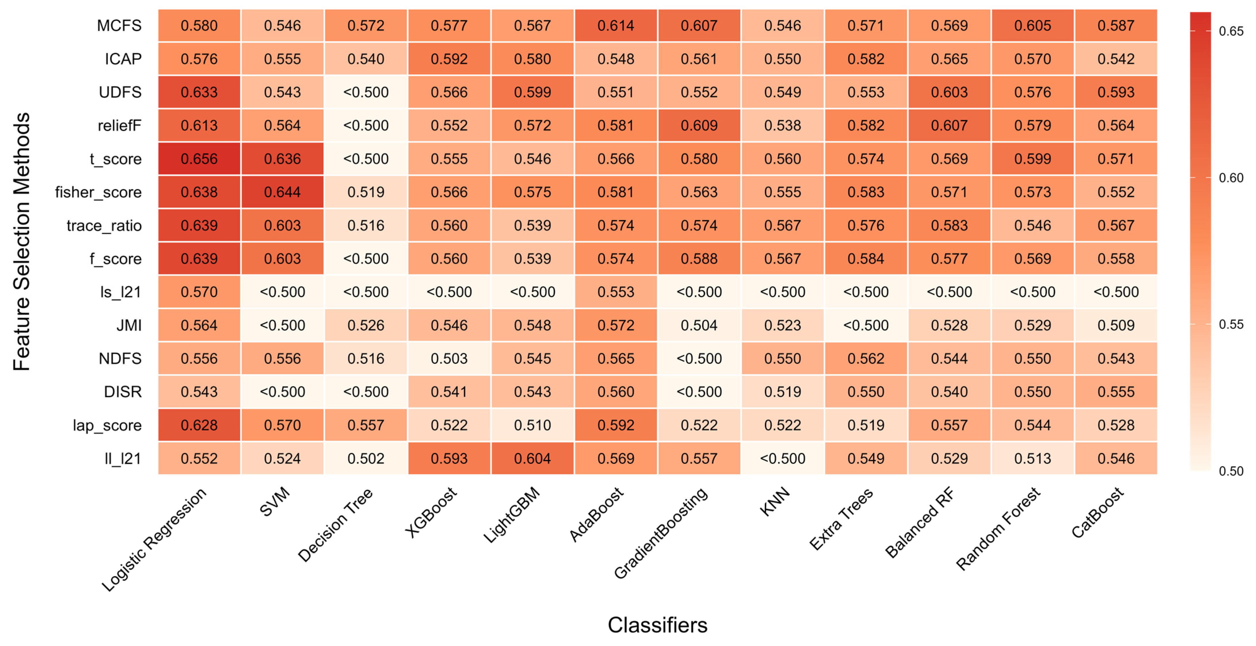 | Feature selection methods | ANOVA F-value selection (F score) |