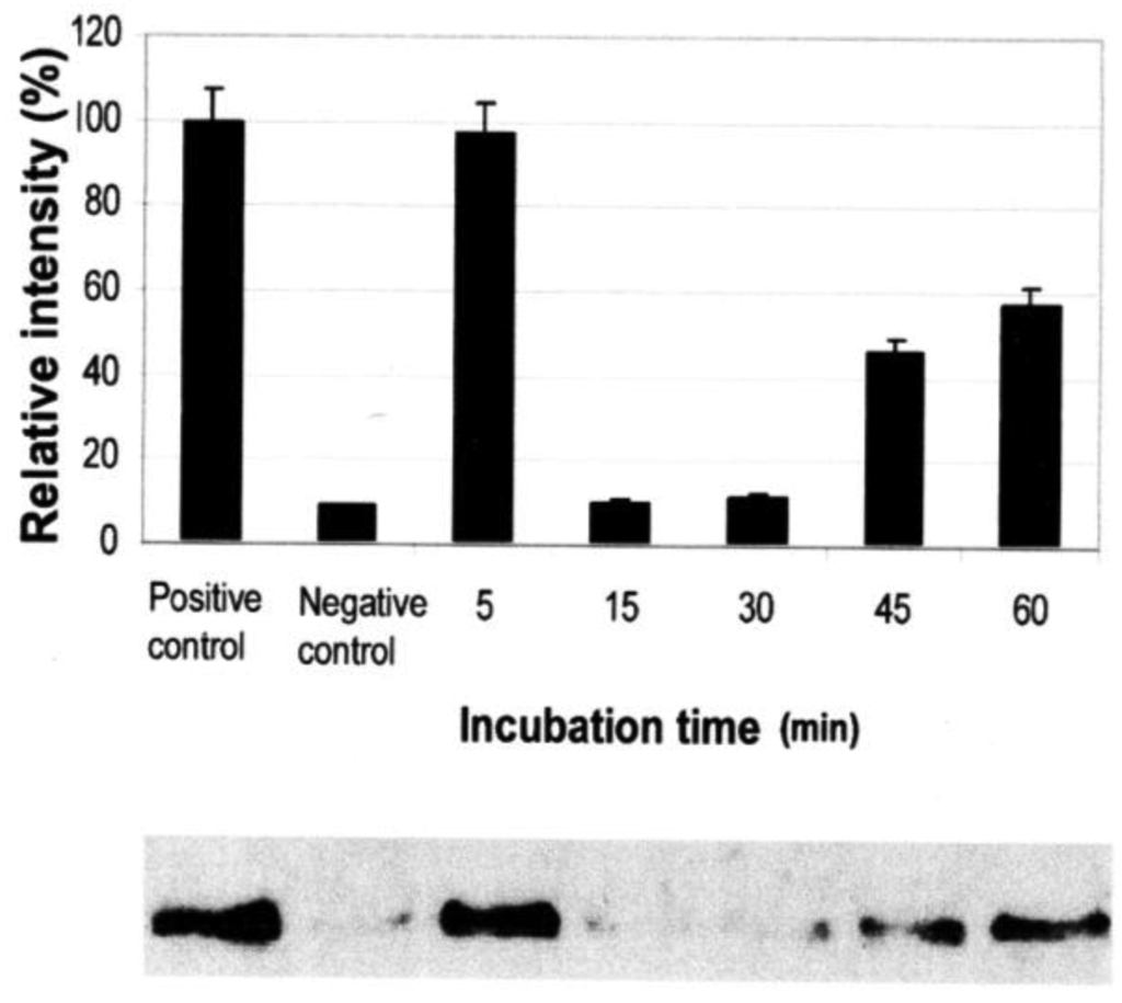 Vessel dilator and kaliuretic peptide (each 1 μM) inhibit the activation of Ras GTP from inactive Ras GDP by 95% (p < 0.0001) (Figure 2) and 90% (p < 0.0001), respectively [7]. At 0.01 μM of kaliuretic peptide, the maximal inhibition was 95%. The inhibition of Ras lasted for 48 to 72 hours secondary to both peptides [7]. Their ability to inhibit Ras was inhibited by cyclic GMP antibody and cyclic GMP itself inhibited Ras phosphorylation (89%; p = 0.0015) [7].