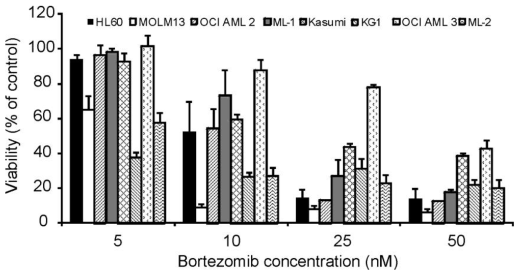 2.2. AML Cell Lines are Highly Sensitive to Bortezomib