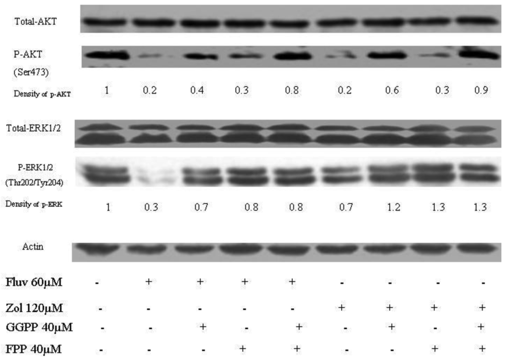 2.5. Reduced phosphorylation of ERK and AKT by fluvastatin and zoledronic acid
