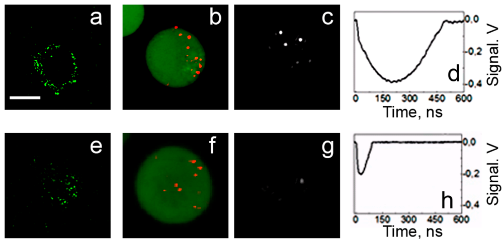 - Lapotko, D.; Lukianova, E.; Chizhik, S. Methods for Monitoring and Imaging Nanoparticles in Cells. Proc. SPIE 2007, 6447, 644703. [Google Scholar]