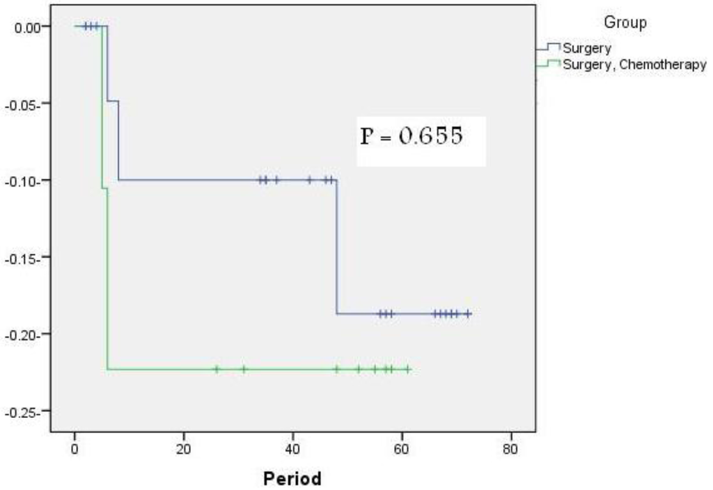 The study cut off limit was January 2010. Disease Free Survival (DFS) was calculated from the first day of diagnosis to the last date of follow up. DFS was estimated with the Kaplan-Meier method. Differences were considered significant when P ≤ 0.05.