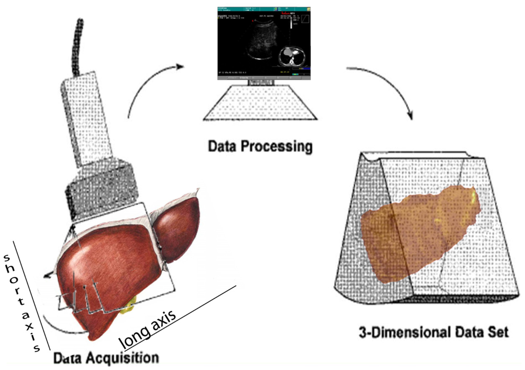 The importance of three-dimensional imaging is accepted for several reasons: the exact location of a given lesion, its relations to neighboring structures and organs (a lesion's continuity may be assessed, particularly in infiltrating neoplastic growths), an accurate measurement of volume in expanding lesions and hence therapy planning, which is particularly relevant for liver tumors undergoing alcoholization, injection of antitumor agents, or therapy with radiofrequency waves, shock waves, etc., as well as response monitoring [5].