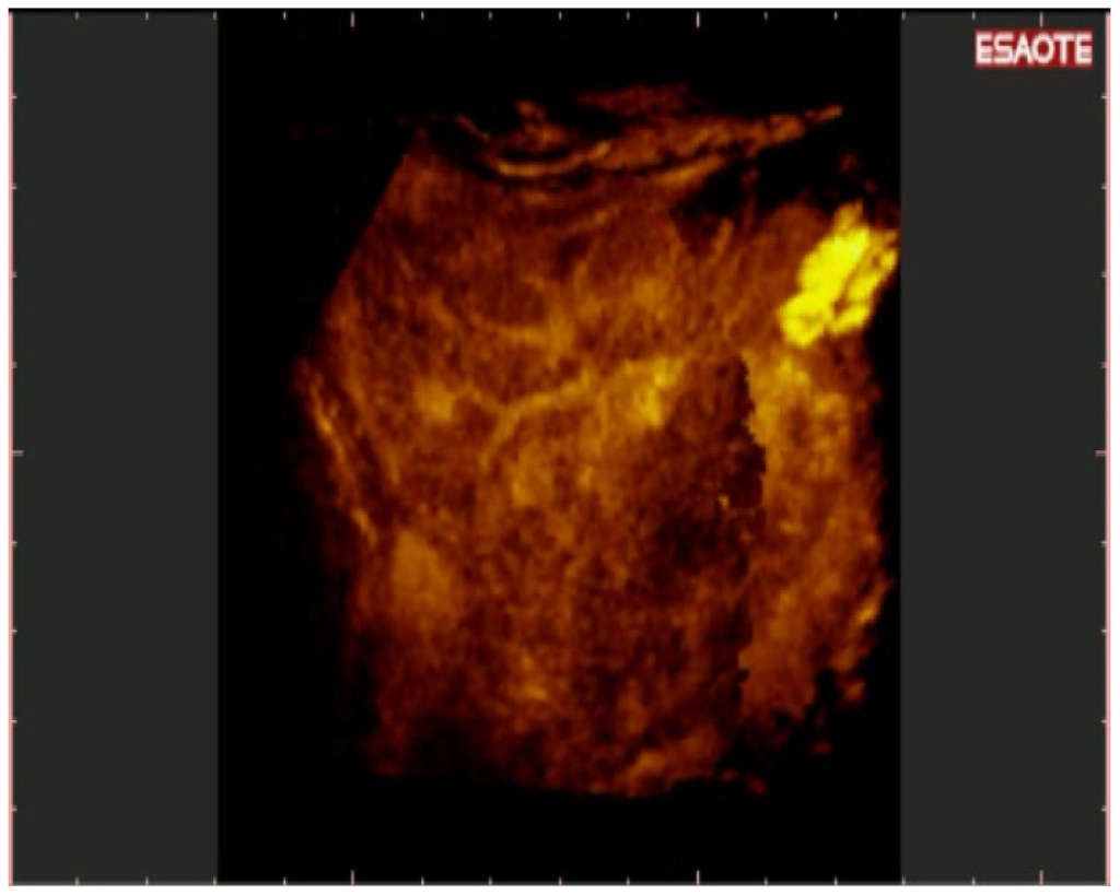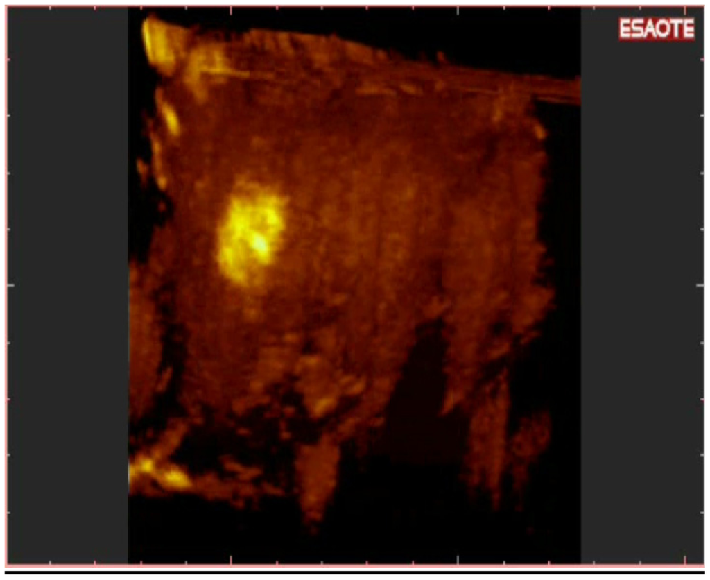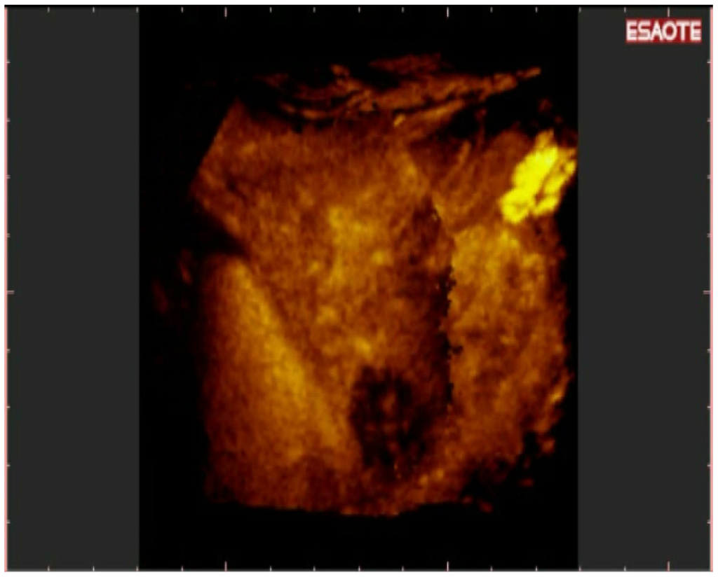 Three dimensional Ultrasonography (3-D US) is a technique able to rebuild a consecutive bi-dimensional US scanning in a three dimensional space. In fact, It acquires a series of 2D images and forms a volume data set, which can be manipulated interactively to display the region of interest from arbitrary orientations and can provide direct 3D images [7–10].