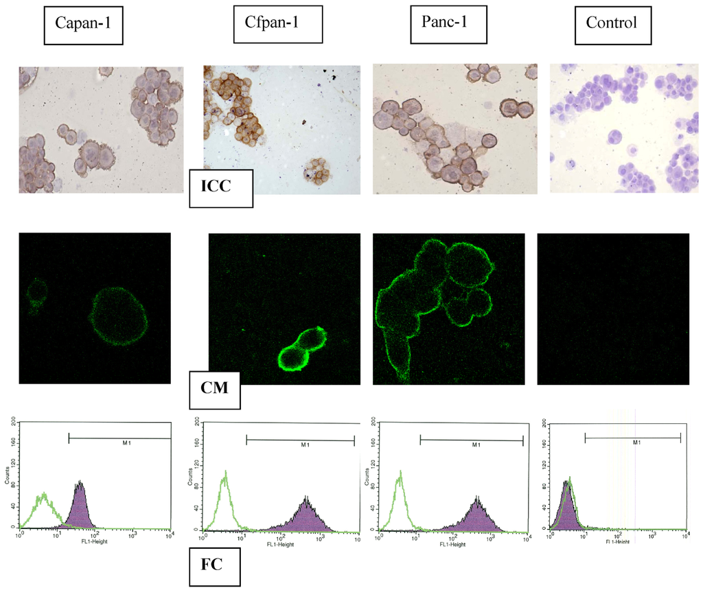 Three human pancreatic cancer cell lines, CFPAC-1, PANC-1 and CAPAN-1 were obtained from American Type Culture Collection (ATCC, Manassas, VA 20108 USA). The medium and monolayer cell culture used have been described previously [16].