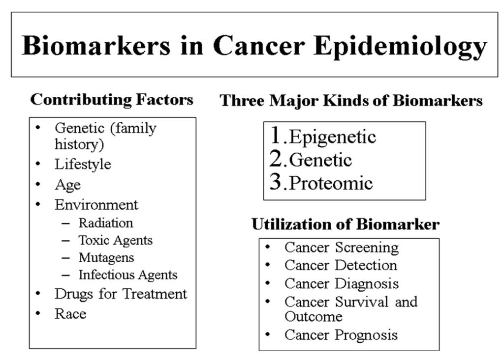 : Understanding the etiology of a disease such as prostate cancer may help in identifying populations at high risk, timely intervention of the disease, and proper treatment. Biomarkers, along with exposure history and clinical data, are useful tools to achieve these goals. Individual risk and population incidence of prostate cancer result from the intervention of genetic susceptibility and exposure. Biochemical, epigenetic, genetic, and imaging biomarkers are used to identify people at high risk for developing prostate cancer. In cancer epidemiology, epigenetic biomarkers offer advantages over other types of biomarkers because they are expressed against a person's genetic background and environmental exposure, and because abnormal events occur early in cancer development, which includes several epigenetic alterations in cancer cells. This article describes different biomarkers that have potential use in studying the epidemiology of prostate cancer. We also discuss the characteristics of an ideal biomarker for prostate cancer, and technologies utilized for biomarker assays. Among epigenetic biomarkers, most reports indicate GSTP1 hypermethylation as the diagnostic marker for prostate cancer; however, NKX2-5, CLSTN1, SPOCK2, SLC16A12, DPYS, and NSE1 also have been reported to be regulated by methylation mechanisms in prostate cancer. Current challenges in utilization of biomarkers in prostate cancer diagnosis and epidemiologic studies and potential solutions also are discussed.1. Introduction: Prostate Cancer Incidence and Prevalence