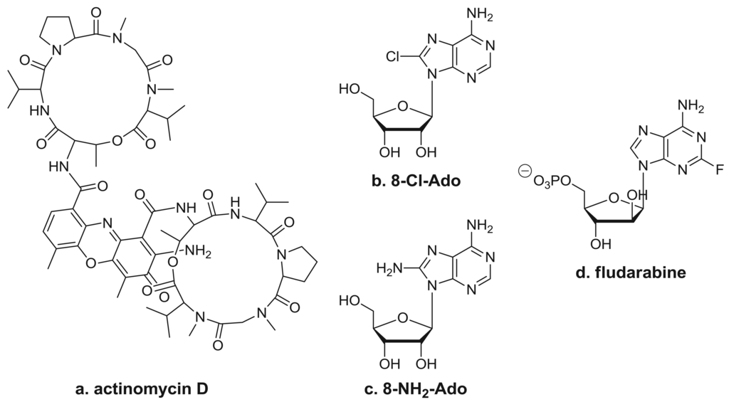 - Frey, J.A.; Gandhi, V. 8-Amino-adenosine inhibits multiple mechanisms of transcription. Mol. Cancer Ther. 2010, 9, 236–245. [Google Scholar]