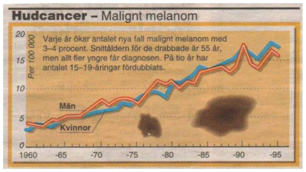 Increasing rates of melanoma in Sweden according to an article in Aftonbladet, 1998.