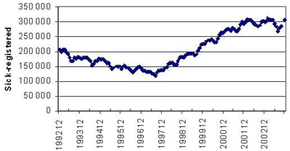 Every summer the number of sick registered in Sweden drops. In 1997 the general trend got worsened.