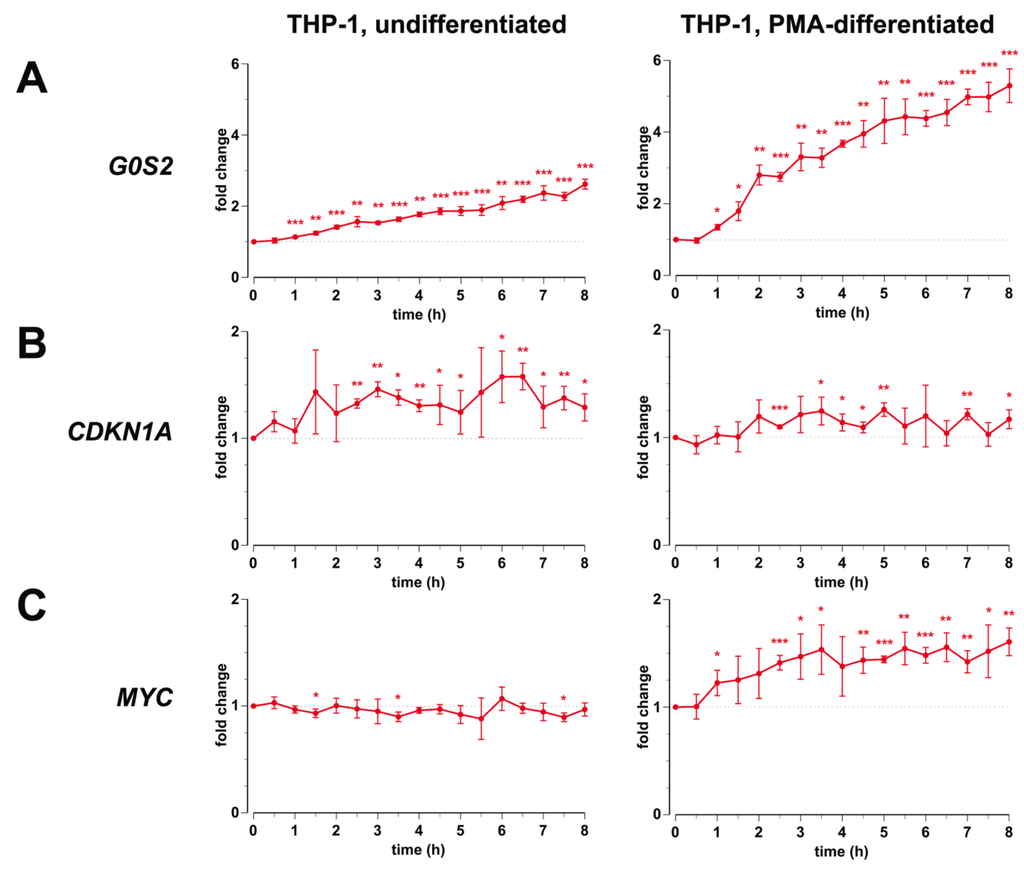 3.1. Transcription of G0S2, CDKN1A and MYC in Monocyte- and Macrophage-Like Cells