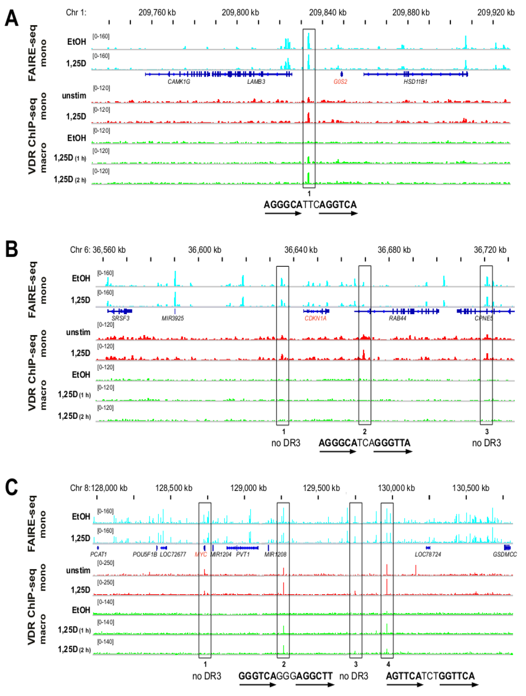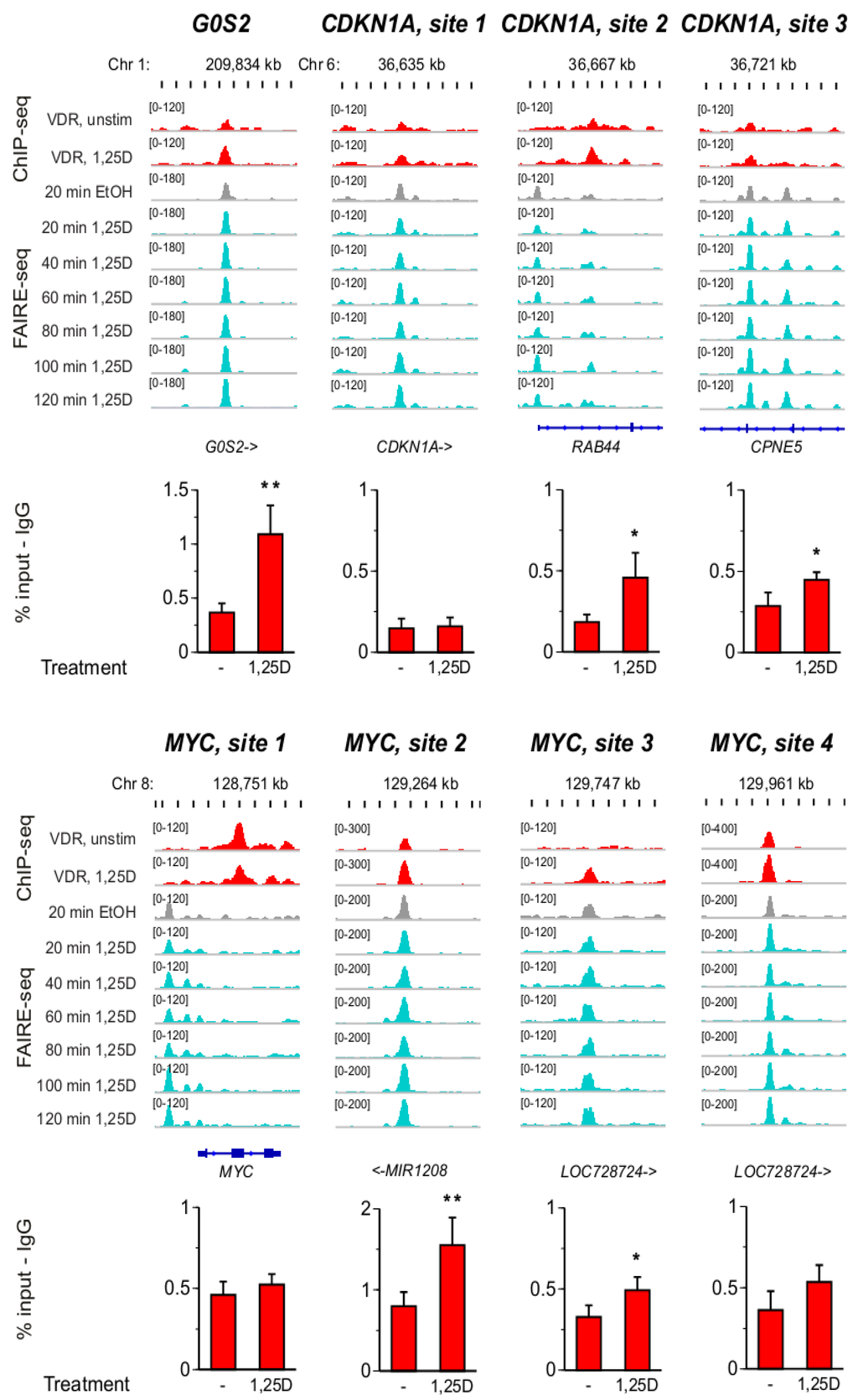 3.3. VDR Binding Sites of G0S2, CDKN1A and MYC