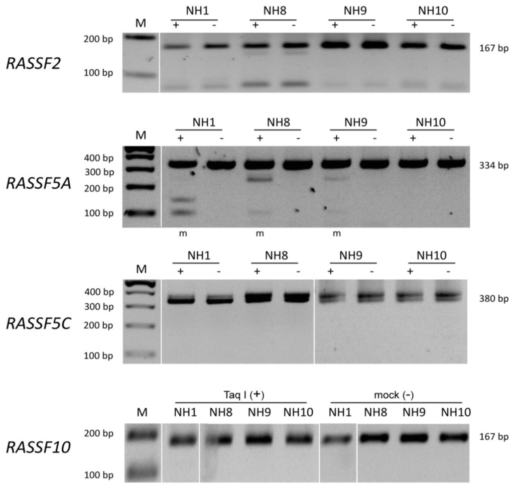 - Richter, A.M.; Pfeifer, G.P.; Dammann, R.H. The RASSF proteins in cancer; from epigenetic silencing to functional characterization. Biochim. Biophys. Acta 2009, 1796, 114–128. [Google Scholar]