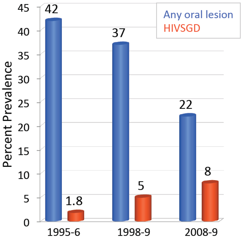 - Patton, L.L.; McKaig, R.; Strauss, R.; Rogers, D.; Eron, J.J., Jr. Changing prevalence of oral manifestations of human immuno-deficiency virus in the era of protease inhibitor therapy. Oral Surg. Oral Med. Oral Pathol. Oral Radiol. Endod. 2000, 89, 299–304. [Google Scholar] [CrossRef]
