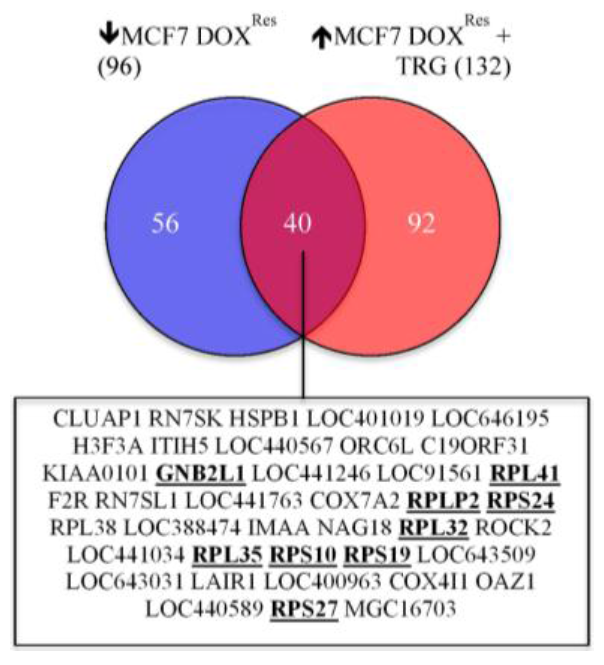 5.7. TRG Reverses the Down-Regulation of a 40-Gene Cluster in DOX Selected Cells