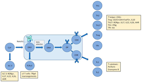 - Shah, D.K.; Zuniga-Pflucker, J.C. An overview of the intrathymic intricacies of T cell development. J. Immunol. 2014, 192, 4017–4023. [Google Scholar] [CrossRef] [PubMed]