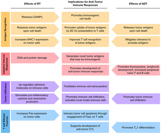 Cellular and molecular effects of ADT and RT as they relate to the development of anti-tumor immunity.