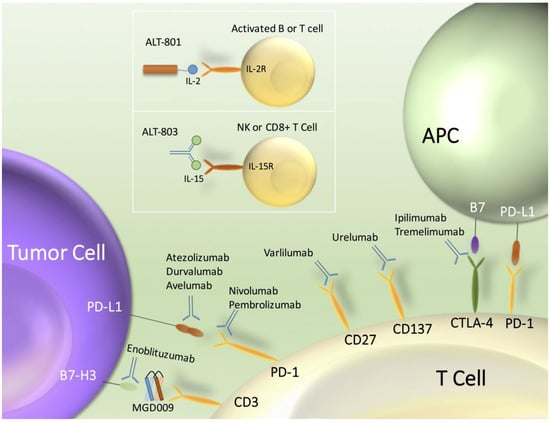 - Fishman, M.N.; Thompson, J.A.; Pennock, G.K.; Gonzalez, R.; Diez, L.M.; Daud, A.I.; Weber, J.S.; Huang, B.Y.; Tang, S.; Rhode, P.R.; et al. Phase I trial of ALT-801, an interleukin-2/T-cell receptor fusion protein targeting p53 (aa264-272)/HLA-A*0201 complex, in patients with advanced malignancies. Clin. Cancer Res. 2011, 17, 7765–7775. [Google Scholar] [CrossRef] [PubMed]