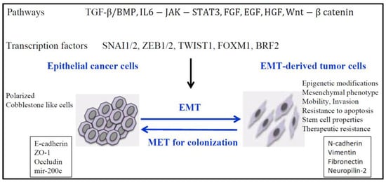 - De Craene, B.; Berx, G. Regulatory networks defining EMT during cancer initiation and progression. Nat. Rev. Cancer 2013, 13, 97–110. [Google Scholar] [CrossRef] [PubMed]