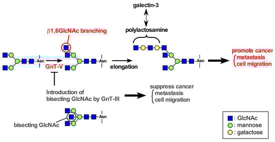 - Takahashi, M.; Kizuka, Y.; Ohtsubo, K.; Gu, J.; Taniguchi, N. Disease-associated glycans on cell surface proteins. Mol. Asp. Med. 2016, 51, 56–70. [Google Scholar] [CrossRef] [PubMed]