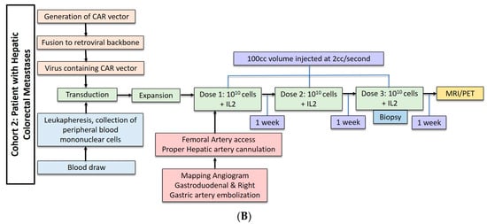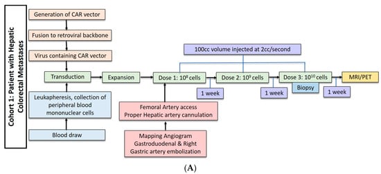 - Katz, S.C.; Burga, R.A.; Mccormack, E.; Wang, L.J.; Mooring, W.; Point, G.; Khare, P.D.; Thorn, M.; Ma, Q.; Stainken, B.F.; et al. Phase I hepatic immunotherapy for metastases study of intra-arterial chimeric antigen receptor modified T cell therapy for CEA+ liver metastases. Clin. Cancer Res. 2015, 21, 3149–3159. [Google Scholar] [CrossRef] [PubMed]