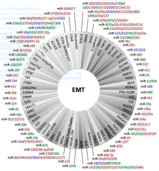 - Zaravinos, A. The Regulatory Role of MicroRNAs in EMT and Cancer. J. Oncol. 2015, 2015, 865816. [Google Scholar] [CrossRef] [PubMed]