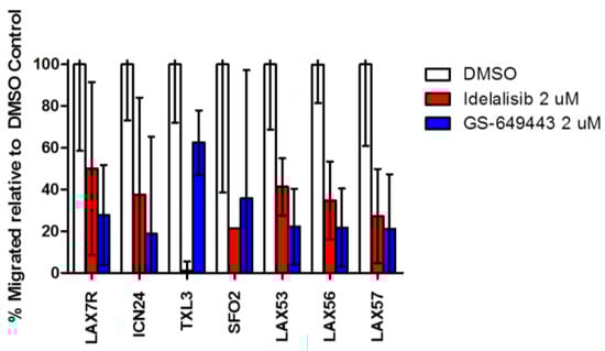 Adam E, Kim HN, Gang EJ, Schnair C, Lee S, Lee S, Khazal S, Kosoyan O, Konopleva M, Parekh C, et al. The PI3Kδ Inhibitor Idelalisib Inhibits Homing in an in Vitro and in Vivo Model of B ALL. Cancers. 2017; 9(9):121. https://doi.org/10.3390/cancers9090121