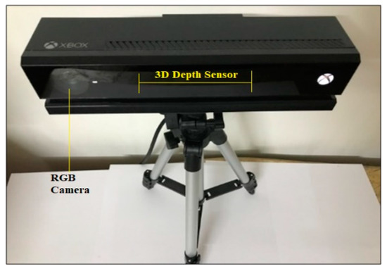 The Kinect V2 sensor, shown in Figure 3, was released by Microsoft in 2014. It is considered an enhanced version of the Kinect V1 model. In this study, the Kinect V2 sensor was utilised because it offers high-resolution image capture for RGB and depth to provide body joints information. Moreover, it has enhanced specifications compared with the older version. The most important features of the Kinect sensor V2 are listed in Table 2. More detail can be found in [22,23,24,25,26,27,28].