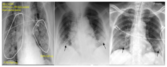 - Jacobi, A.; Chung, M.; Bernheim, A.; Eber, C. Portable chest X-ray in coronavirus disease-19 (COVID-19): A pictorial review. Clin. Imaging 2020, 64, 35–42. [Google Scholar] [CrossRef]